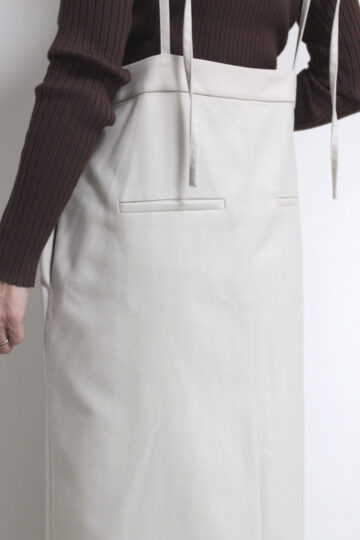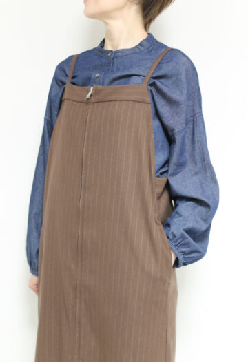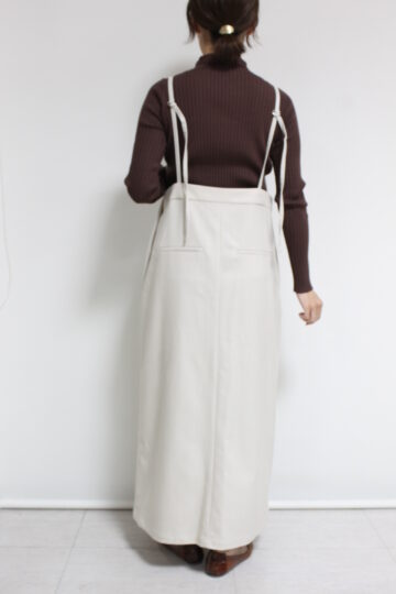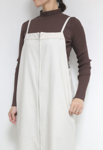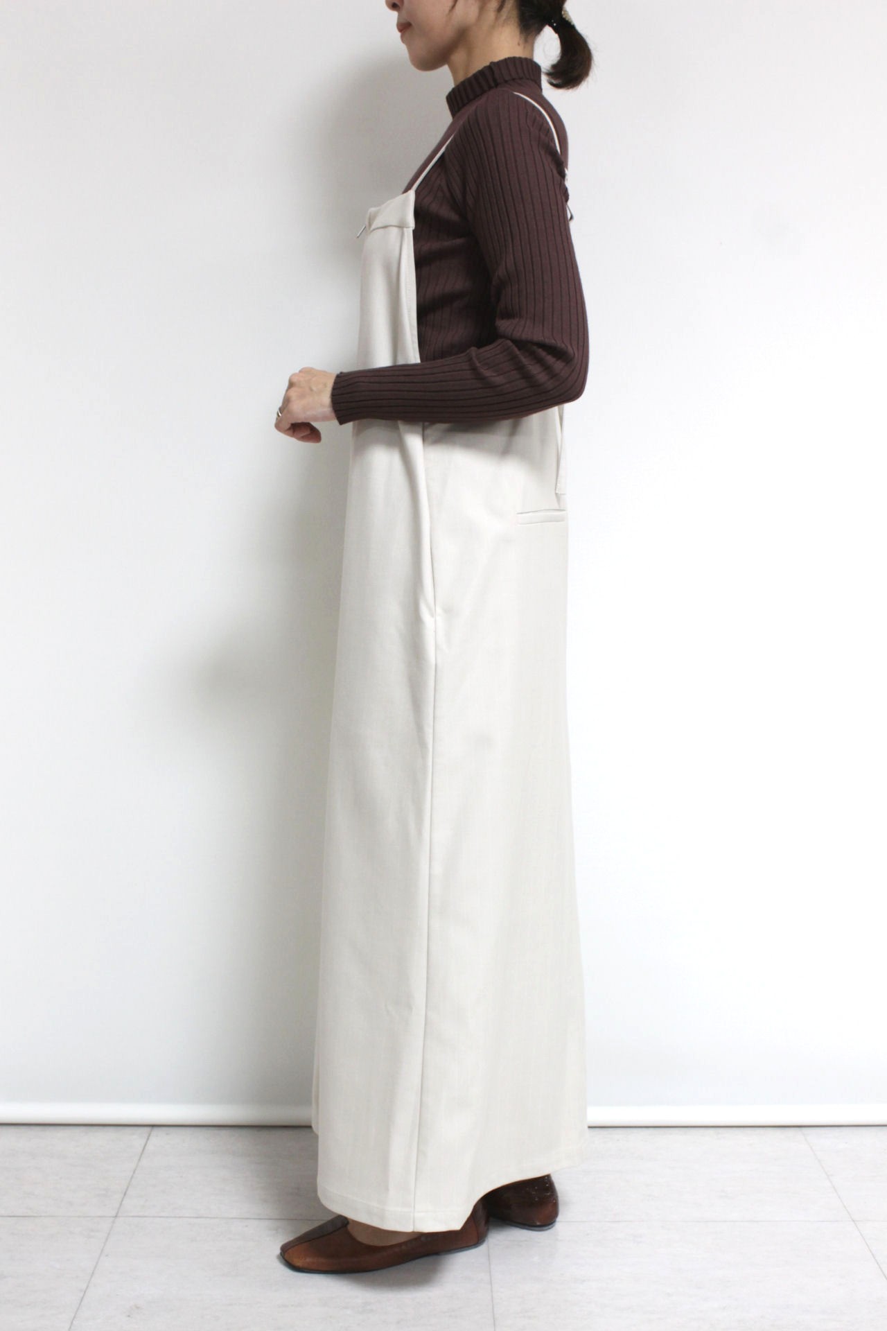↓↓ピンストライプが秋冬のスタイリングにマッチするロージー(ROSIEE)のジャンスカ。インナーはリブニットをチョイスすれば間違いなし・・シャツやロンTでカジュアルにコーディネートするのもおすすめです◎「アイボリー」19,000円(税込20,900円)ロージーROSIEE/リブニット11,800円(税込12,980円)マリードールMARIED’OR