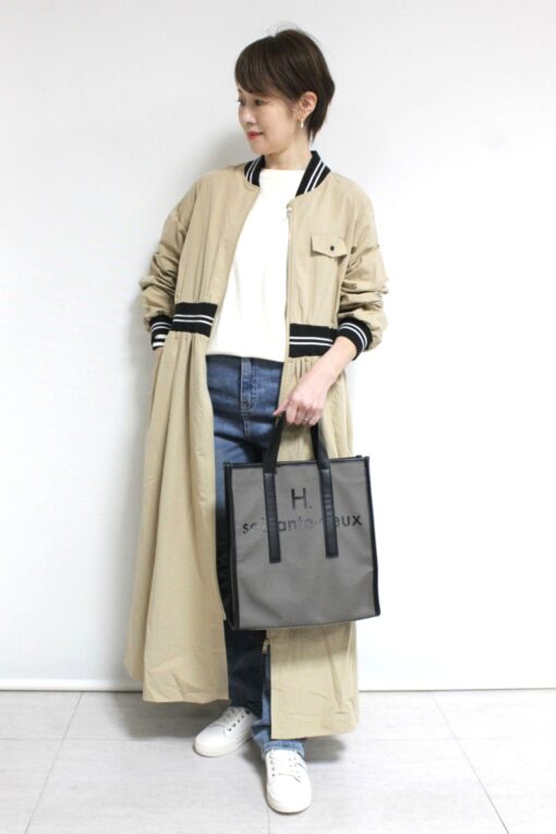 ↓↓新ブランド・ブランコイブリロ(blanco y brillo)からシャツワンピースが登場。前を開けて羽織りとして使えばアウター感覚の着こなしに。前を閉めれば一枚でスタイリングが完成します。「カーキ」 16,000円(税込17,600円)ブランコイブリロblanco y brillo/セーター11,000円(税込12,100円)シロデラボンテsiro de labonte/マルチパンツ16,000円(税込17,600円)ソーノSONO