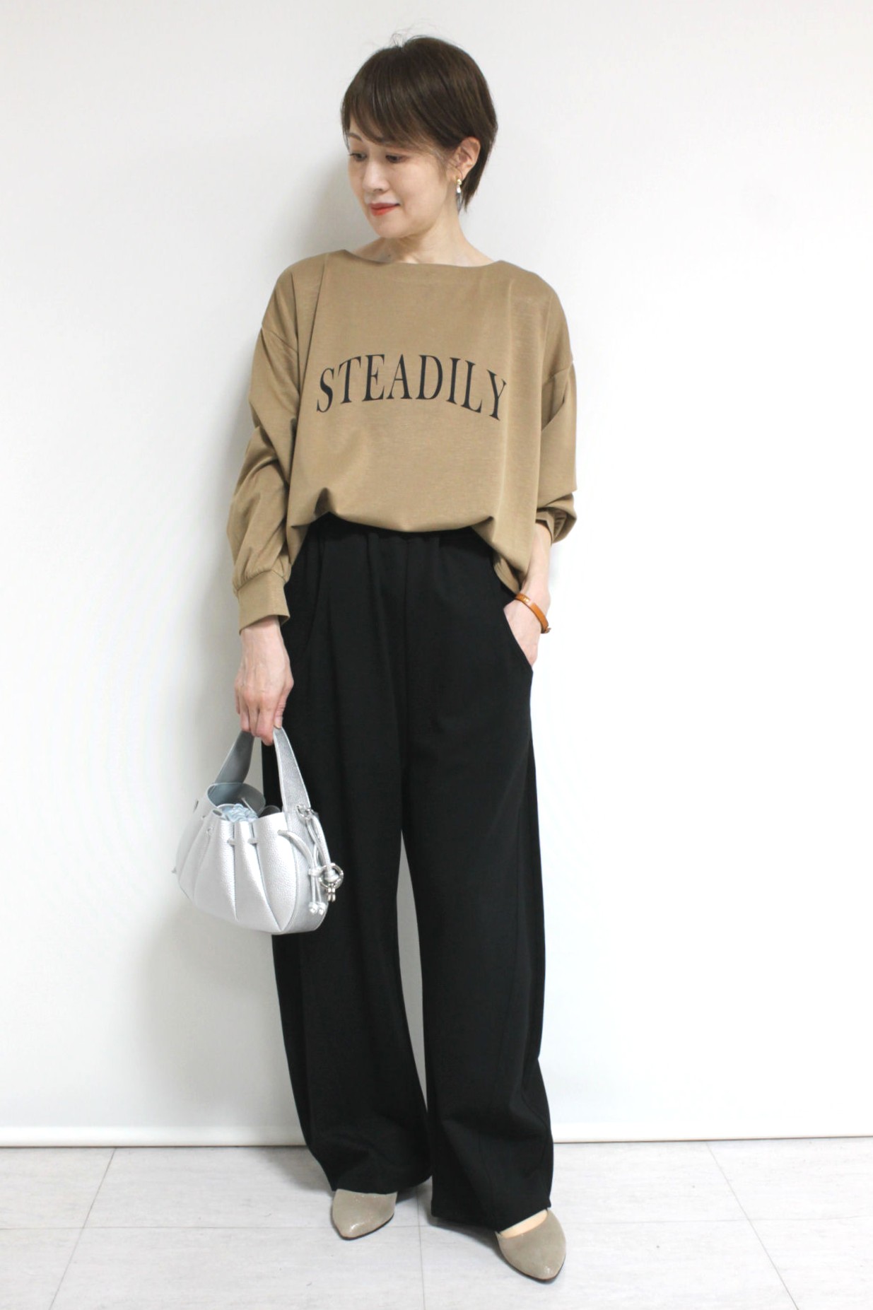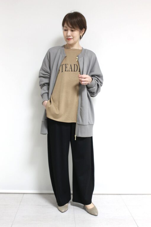 ↓↓袖付け広めのドルマンスリーブで身体のラインを拾わずきれいに着られます◎