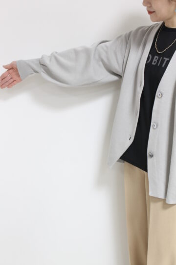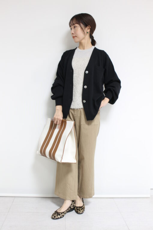 ↓↓開けて閉じてもサマになり、パンツでもスカートでも合わせやすい丈感。