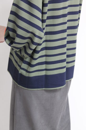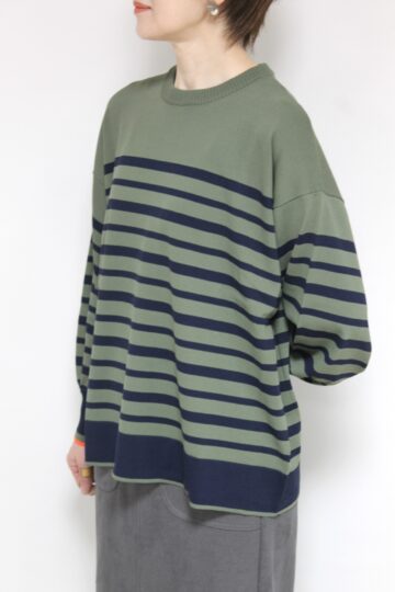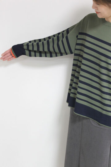 ↓↓カーキとネイビーの色合わせがおしゃれなフォンタナ(FONTANA)袖配色ボーダーニットプルオーバー。雰囲気を作ってくれるボーダーがカジュアルなスタイリングをワンランクアップしてくれます。 13,000円(税込14,300円)フォンタナFONTANA/スカート 14,000円(税込15,400円)ロージーROSIEE
