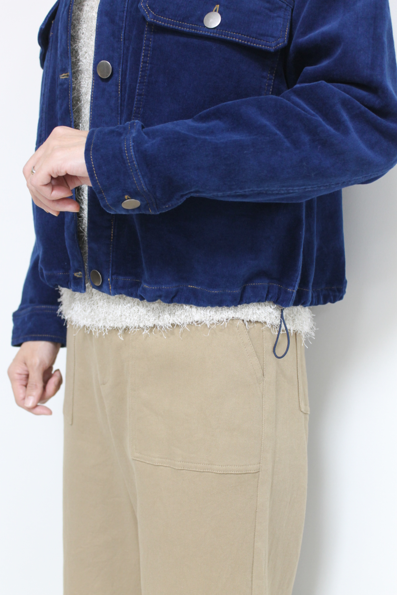 ↓↓柔らかい雰囲気のコーデュロイ素材はカジュアルにもフェミニンにも合わせやすいのが特徴です。「インディゴ」 17,000円(税込18,700円)マリードールMARIED’OR/パンツ 13,800円(税込15,180円)フォンタナFontana*こちらはメーカー問い合わせ品になってます。