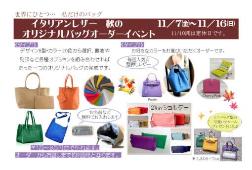 CREEKSの人気催事「イタリアンレザーオーダーバックイベント」を現在開催中~!