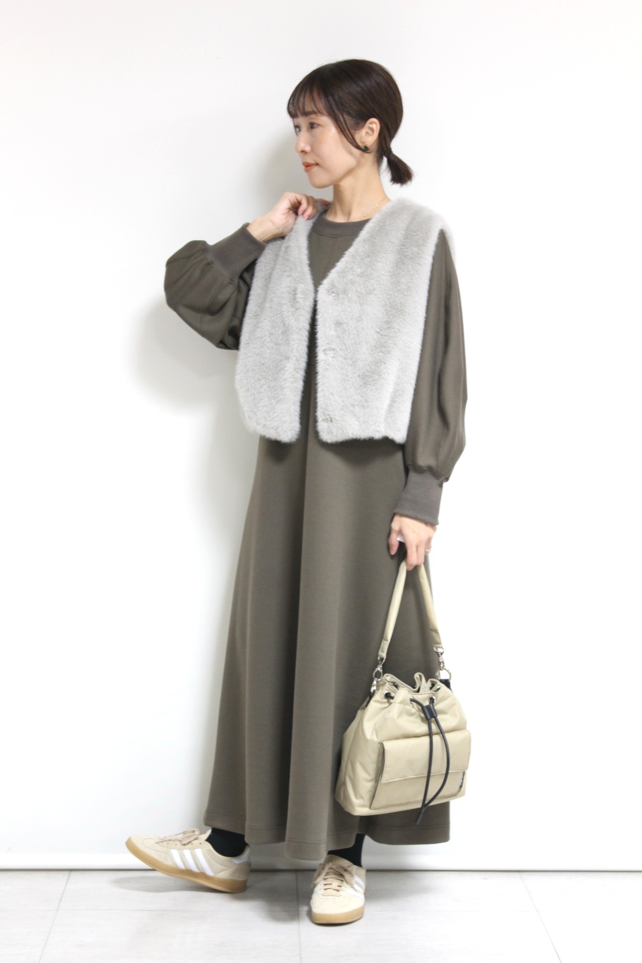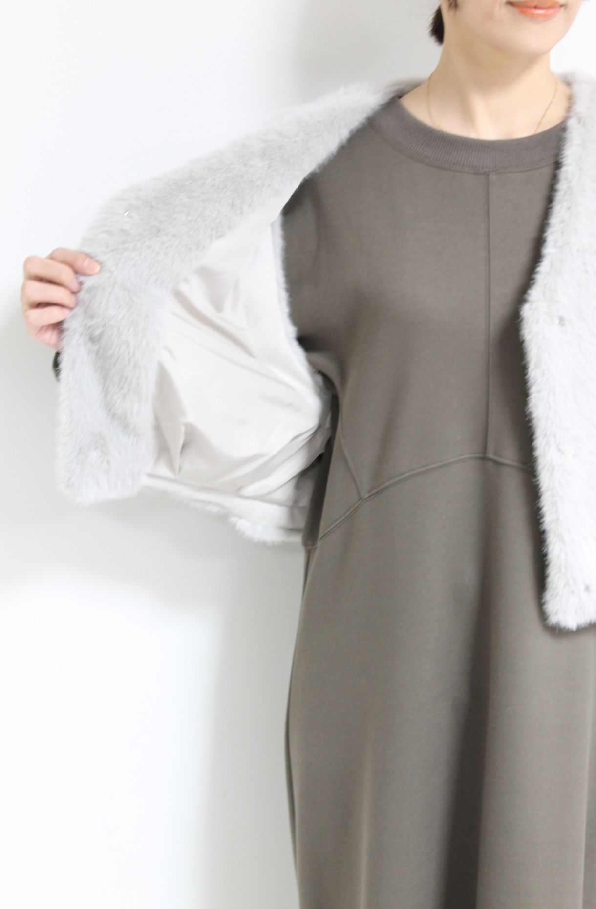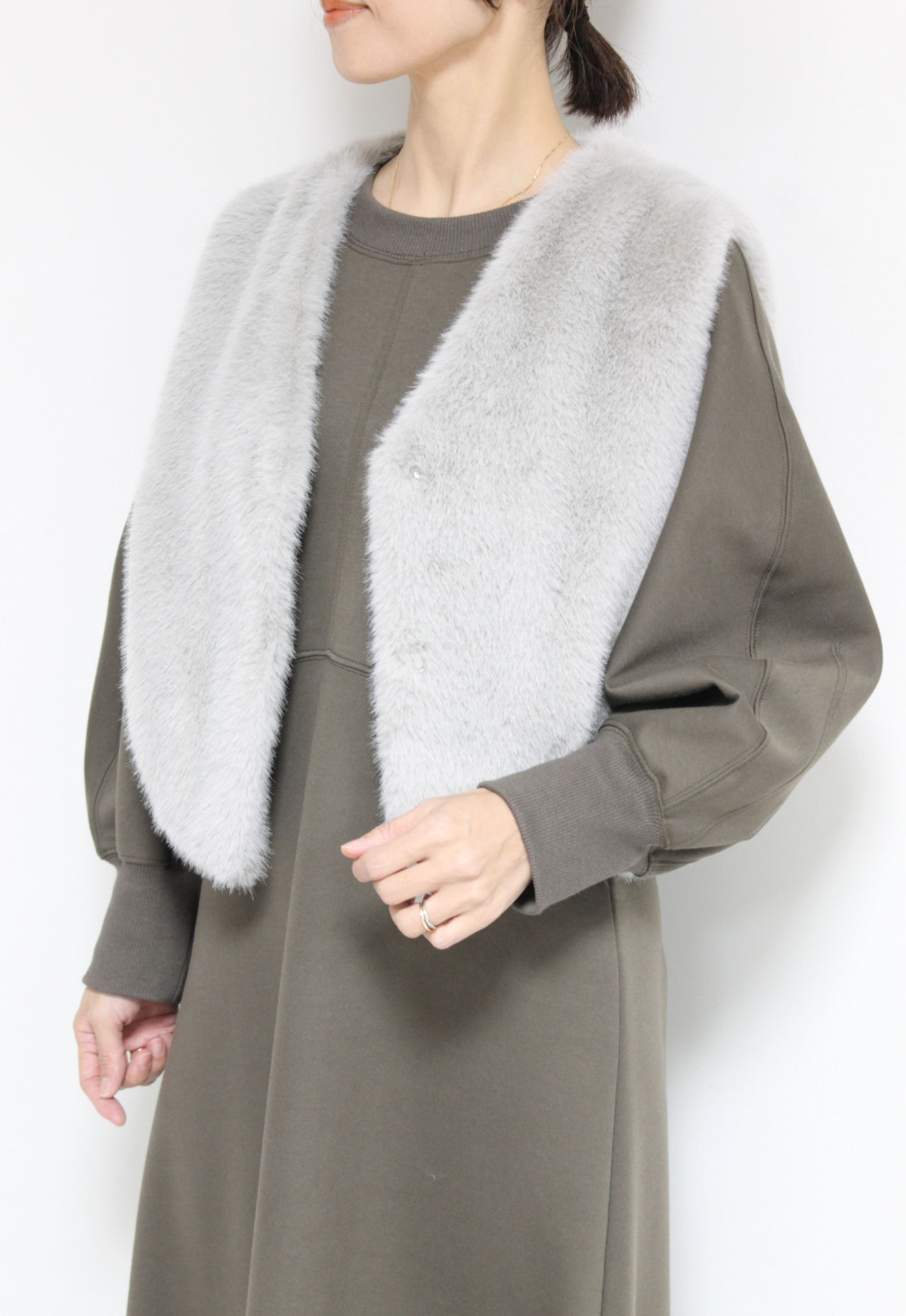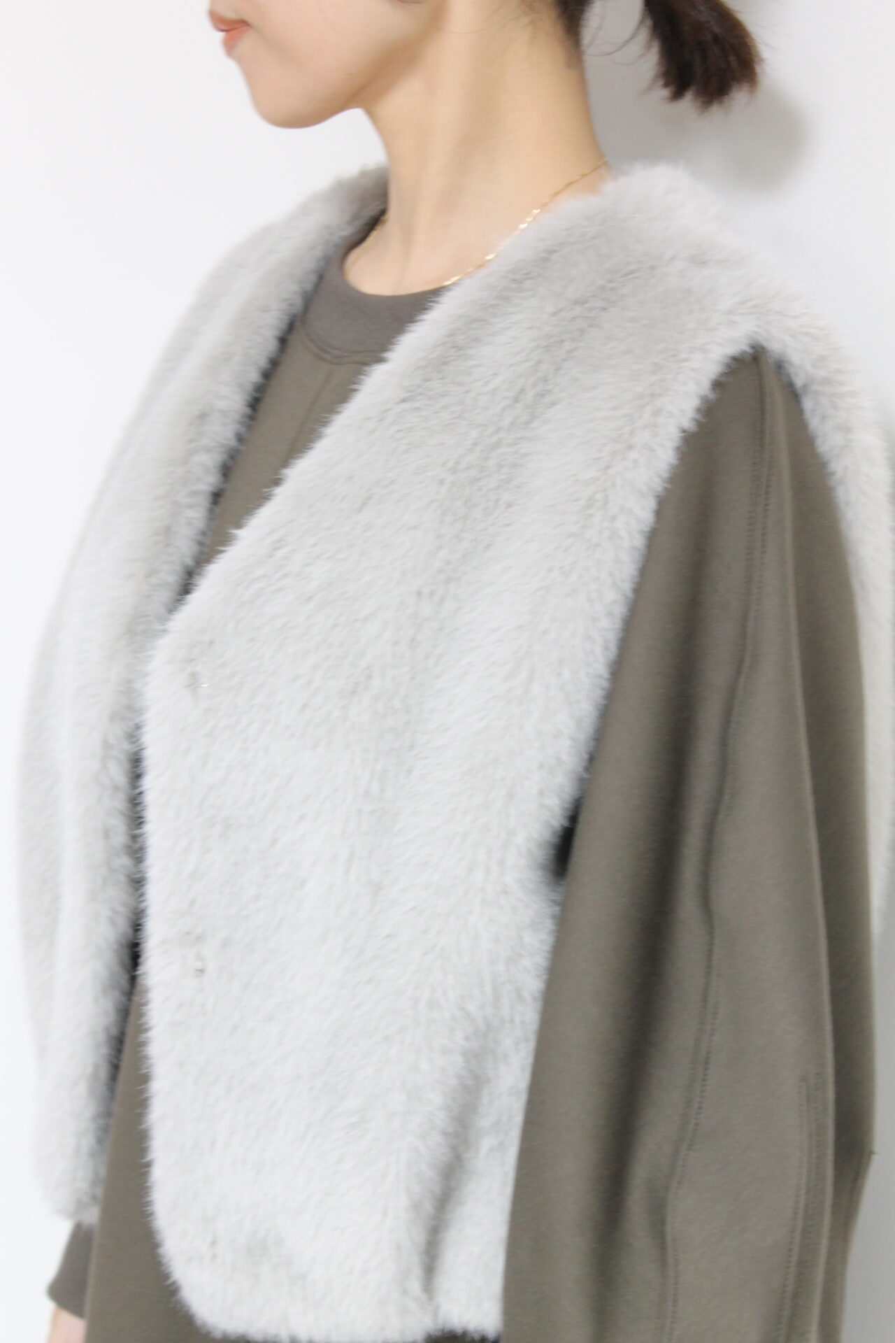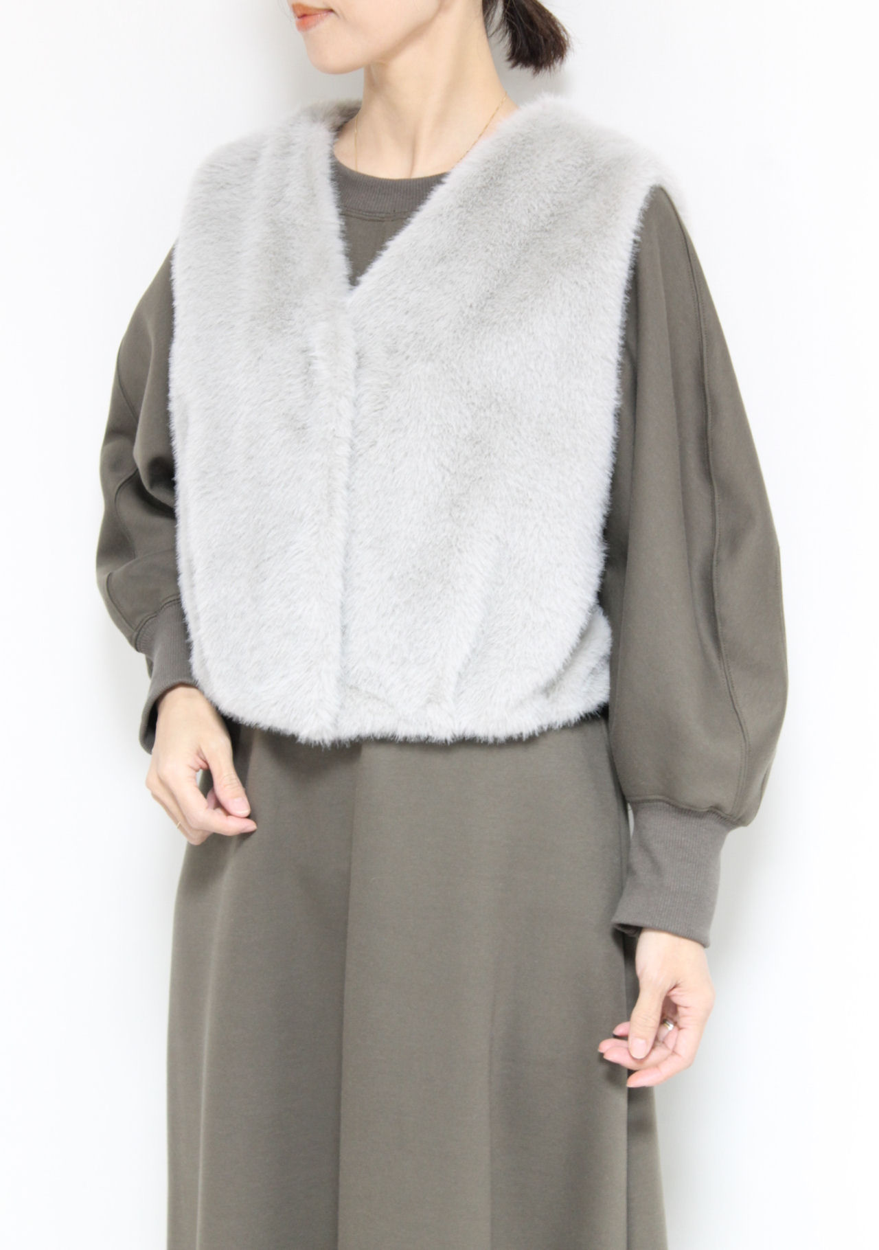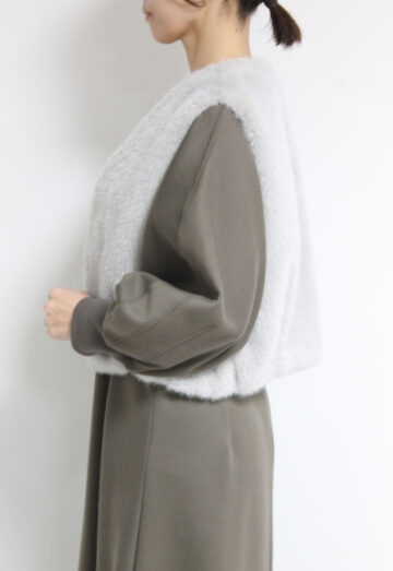 ↓↓マリードール(MARIED’OR)の思わず触れたくなるようなふわふわのエコファー素材を使ったショートベスト。コンパクトなシルエットで自然とスタイルアップ効果が◎17,000円(税込18,700円)マリードールMARIED’OR
