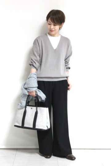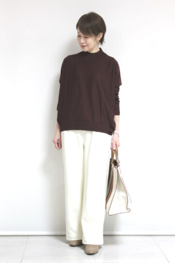 2.一見、普通のパンツですがとっても暖かくて楽なはき心地。落ち感のある生地だからすっきりした自然なシルエットです。