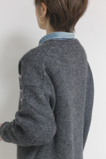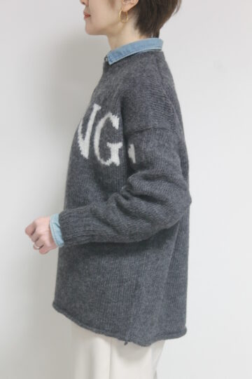 ↓↓マリードール(MARIED’OR)ジャガードロゴプルオーバー。衿ぐりと裾は天竺ロールになっており、ウール100%ですがチクチク感が比較的少ない糸を使用しています☆ 16,800円(税込18,480円)マリードールMARIED’OR