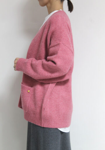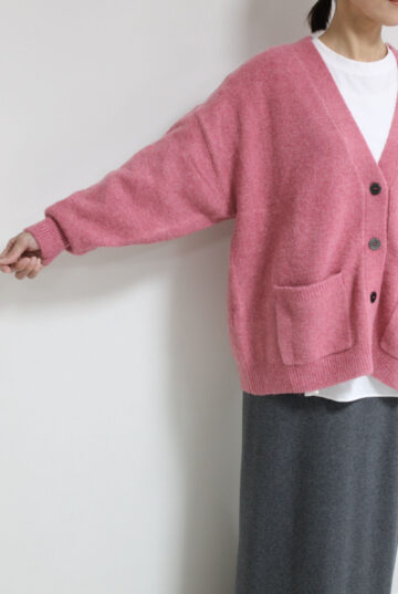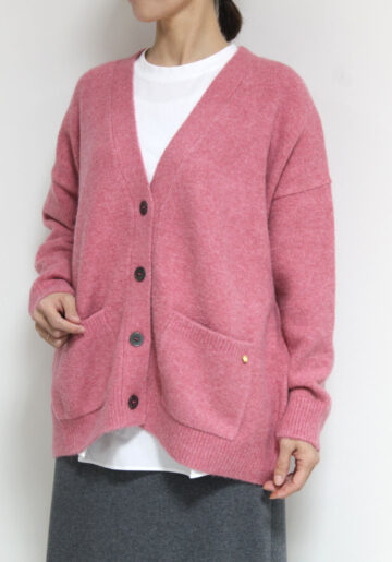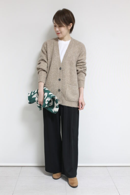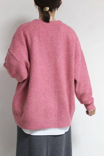 ↓↓Ⅴネックのカーディガンはビッグサイズ。ウール混のアクリル素材の暖かさを感じていただけます◎