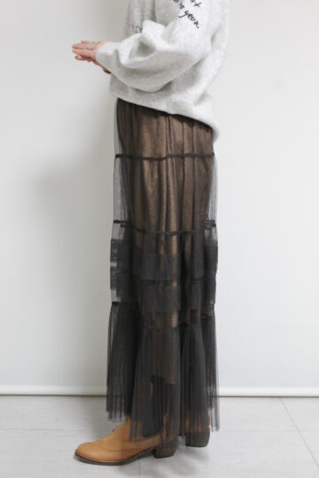 ↓↓チュールはフリルやプリーツを重ねたフェミニンでボリュームのあるシルエット。