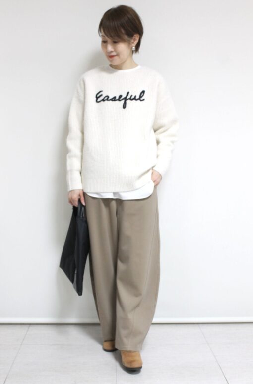 ↓↓ディニテコリエ(Dignite Collier)から暖かみがあるミドルゲージの刺しゅうロゴニットが登場!ご家庭で洗えるイージーケアな仕立てなのもうれしい◎「ベージュ」 14,000円(税込15,400円)ディニテコリエDignite Collier