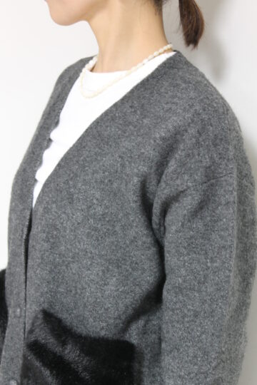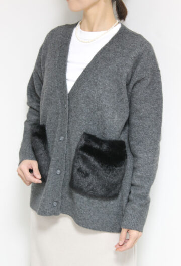 ↓↓シンプルな編地にフェイクファーのポケットで抜け感のある仕上がりに。