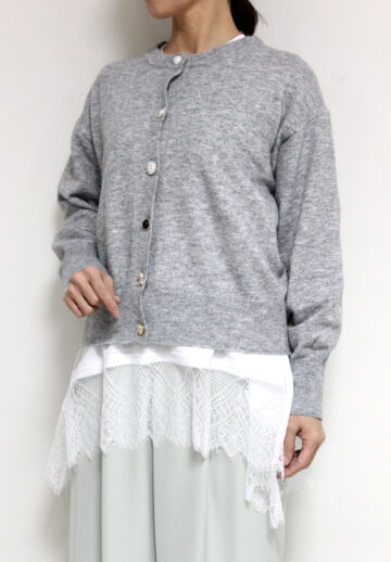 ↓↓テイストが違うボタンを配置して遊び心のあるキャッチーなデザインに仕上げたルクールブラン(le.coeur blanc)ビジューボタンカーディガン。これからの季節にスタイリングのポイントとして活躍してくれそうですね◎(ロージーの裾レースカットソー780333をインに合わせてます) 8,000円(税込8,800円)ルクールブランle.coeur blanc