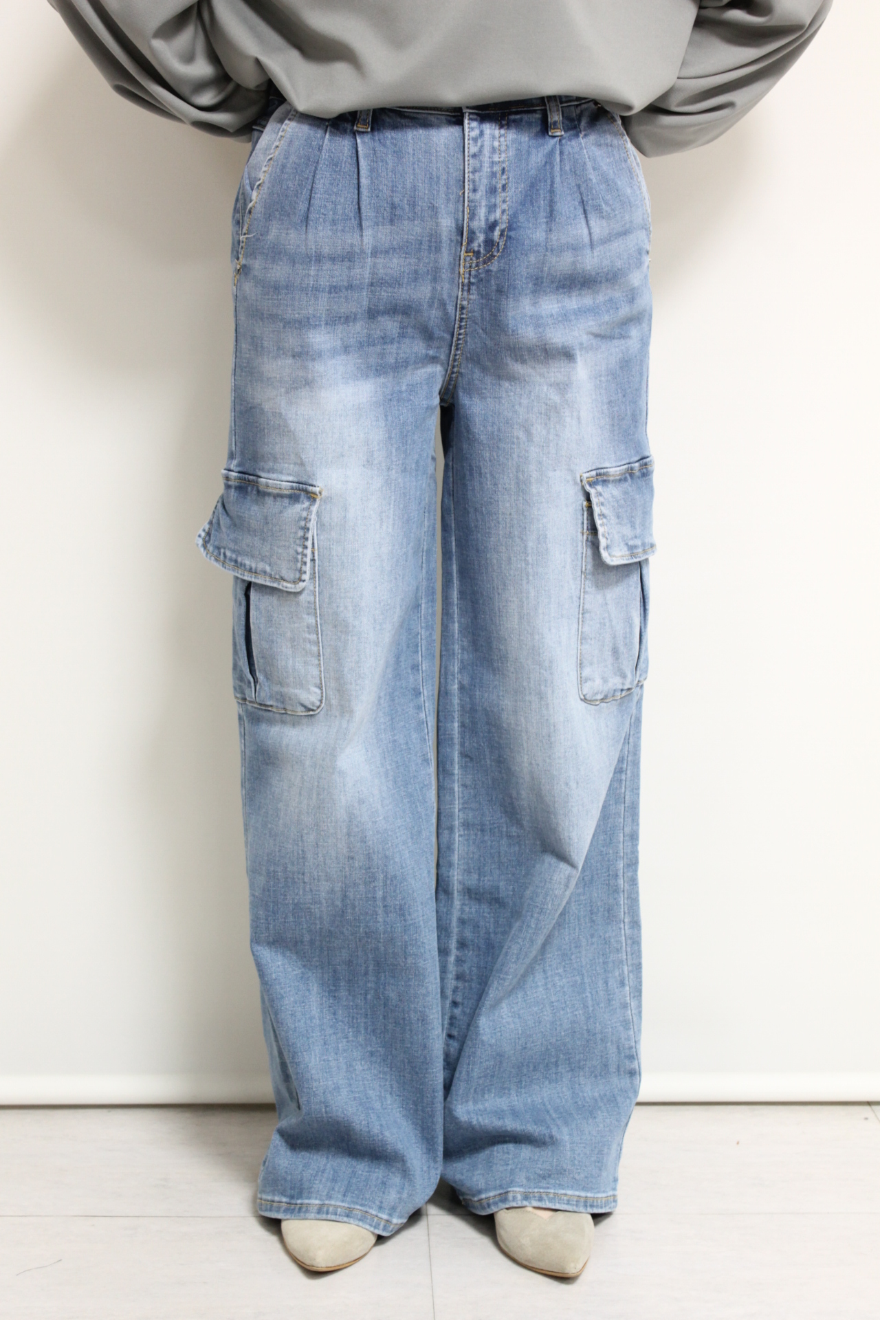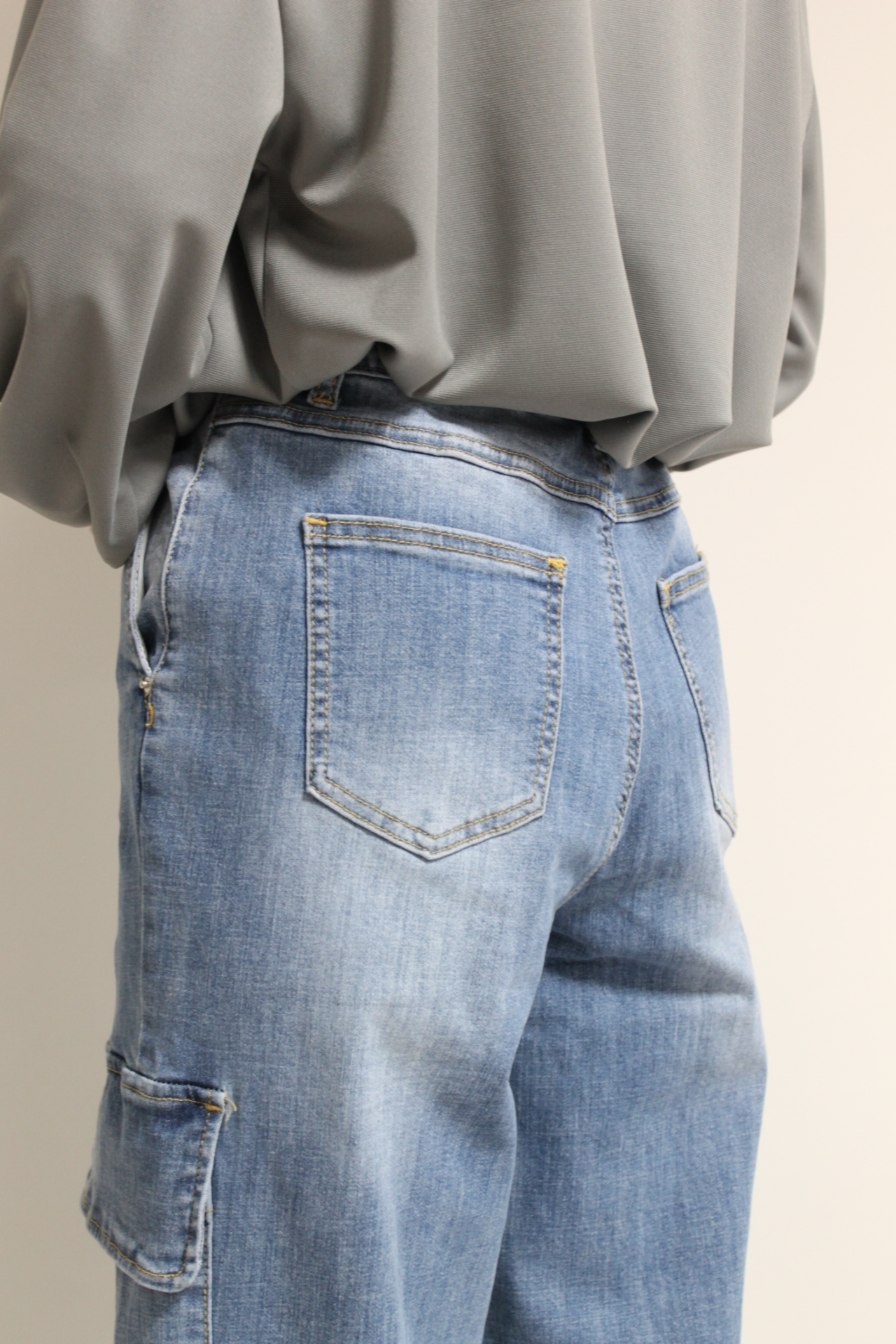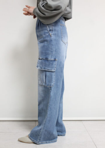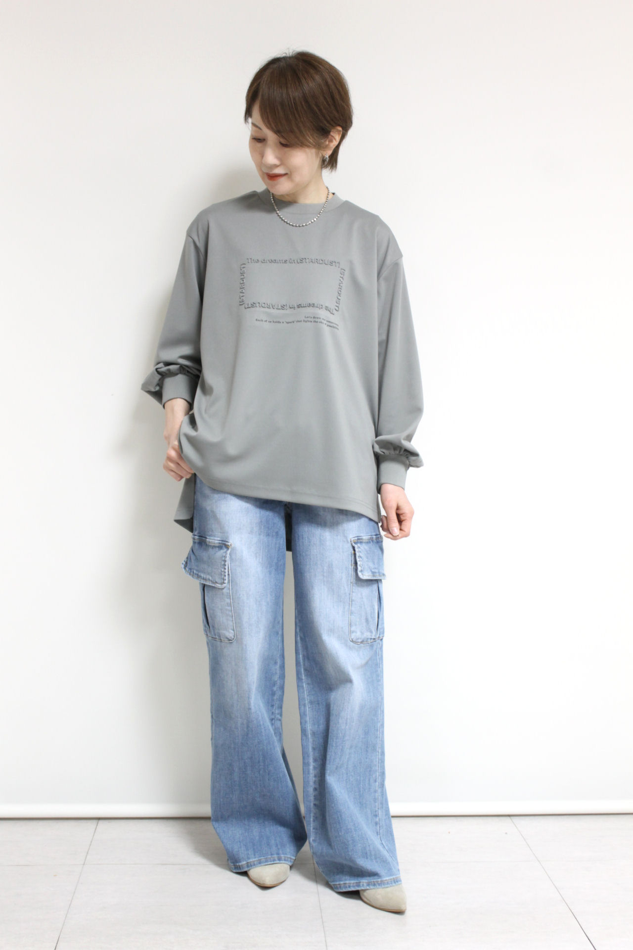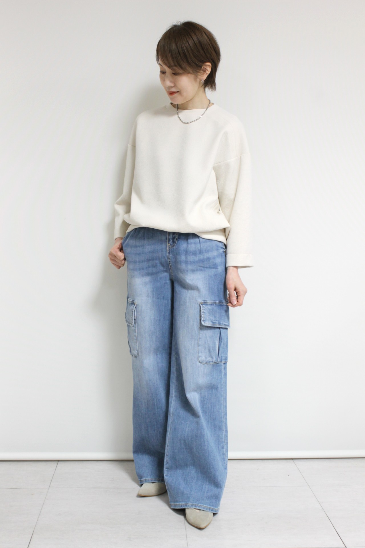 ↓↓インディマーク(INDIMARK)から程よいハリと伸縮性を備えたストレートカーゴデニムが登場!淡いブリーチトーンが軽やかな印象を演出し、季節を問わず幅広いコーディネートに活躍します。13,600円(税込14,960円)インディマークINDIMARK/カットソー12,000円(税込13,200円)パシオーネPASSIONE