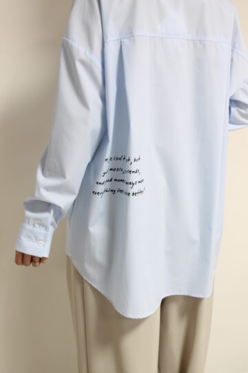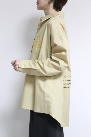 ↓↓秋から人気を集めている落書き風デザイン。前後にあしらわれた刺繍やプリントが目を惹く、ロージー(ROSIEE)のレタリング刺繍ブラウス。17,000円(税込18,700円)ロージーROSIEE