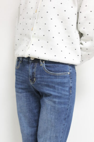 ↓↓カジュアルはもちろん、ジャケットやシャツと合わせればぐっと大人っぽく。インディゴ特有の落ち着いたトーンがスタイリングを引き締めてくれます。
