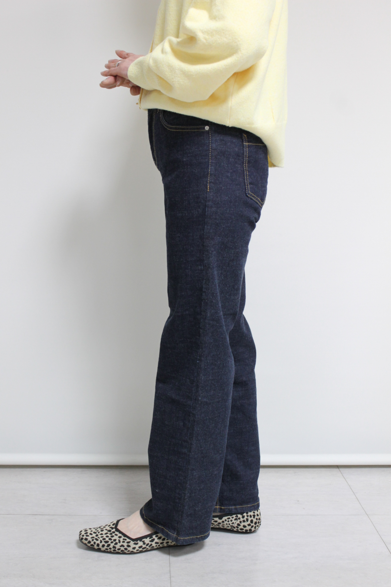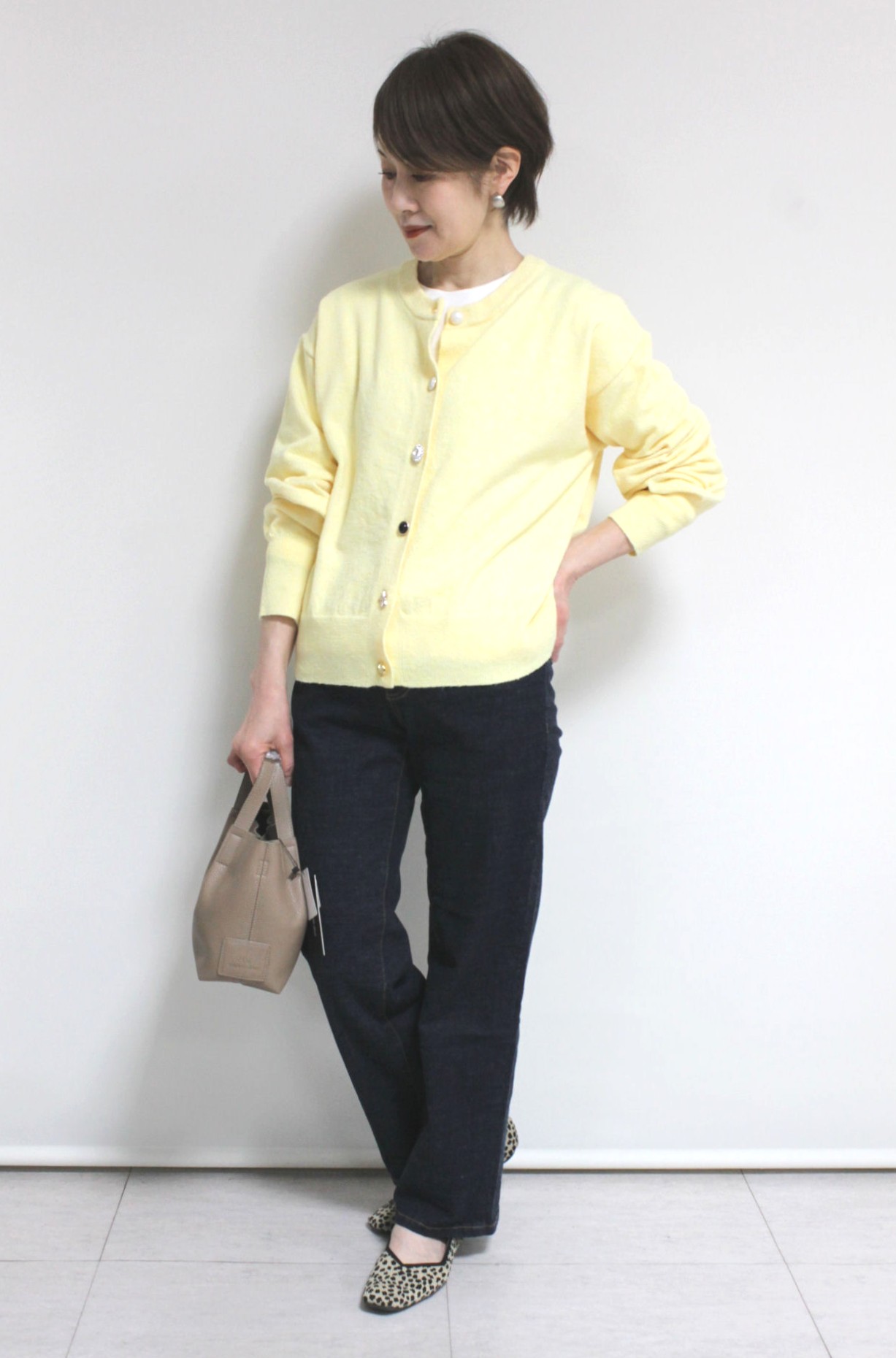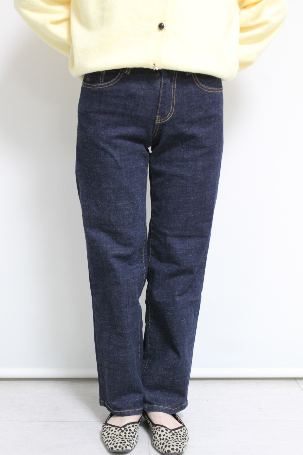 ↓↓もう一色は「インディゴ」。加工を控えてデニム特有のラフさを残しつつも、どこかきちんと感が漂う。大人が安心して選べるお色味です。 11,800円(税込12,980円)インディマークINDIMARK/カーディガン 8,000円(税込8,800円)ルクールブランle.coeur blanc
