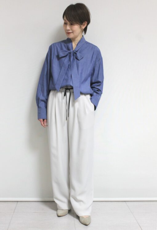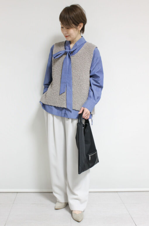 ↓↓軽い生地のデニムがエレガントになりがちなボウタイデザインをカジュアルダウンしてくれるルクールブラン(le.coeur blanc)のダンガリーシャツ。シンプルなデザインで着回しが効いてスタイリングの幅が広がる便利なアイテムです◎ 12,000円(税込13,200円)ルクールブランle.coeur blanc/ベスト10,000円(税込11,000円)ロージーROSIEE