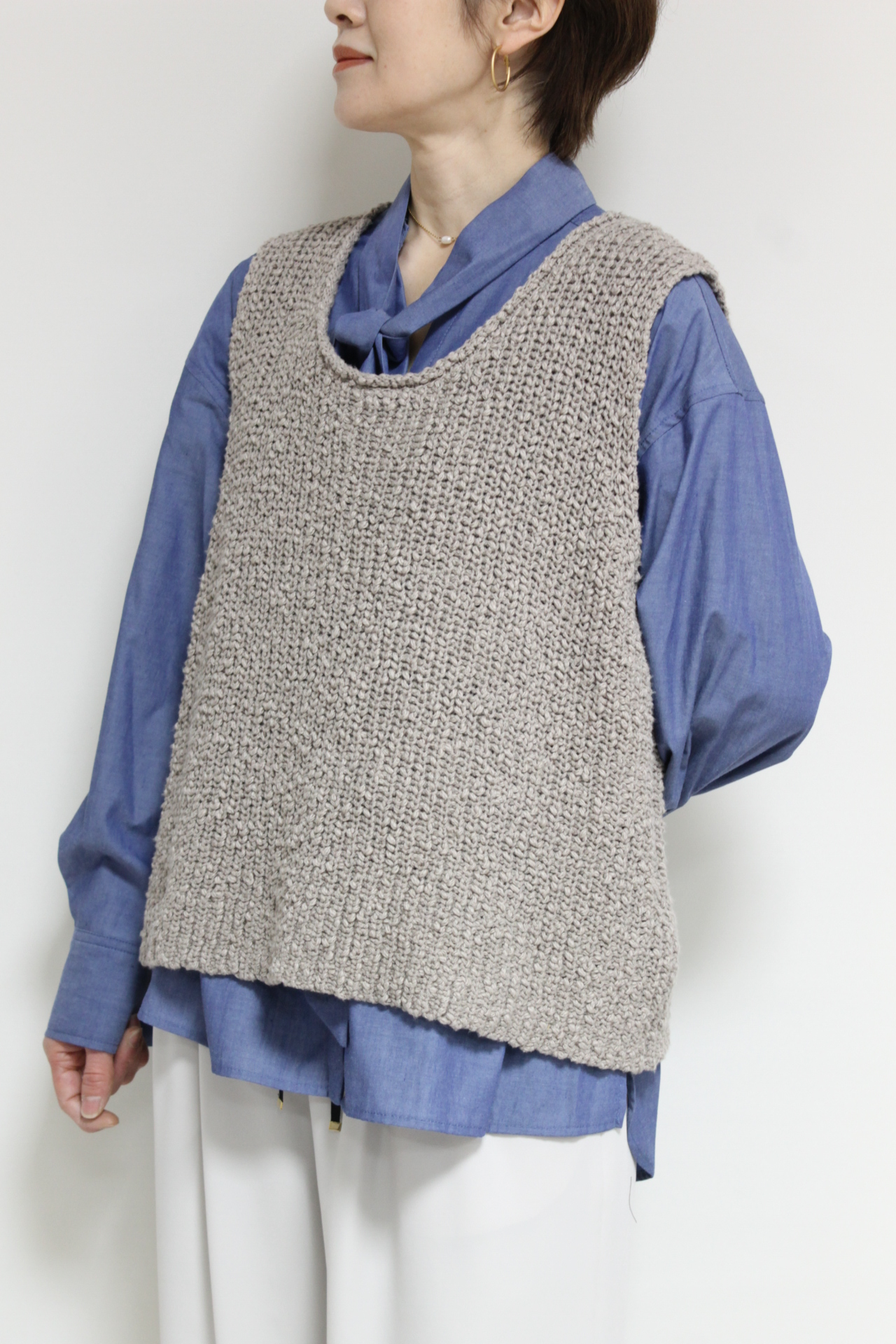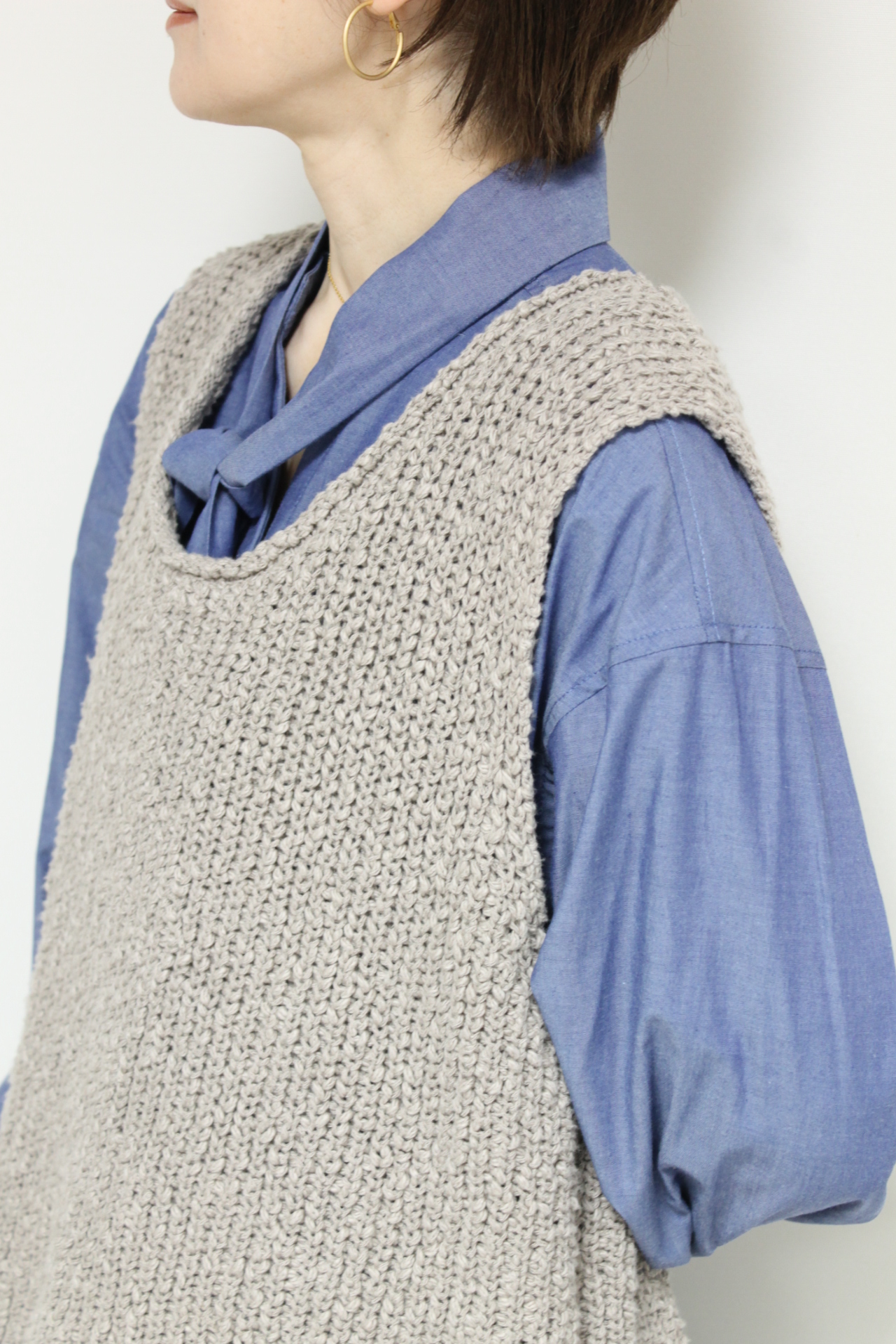 ↓↓軽い生地のデニムがエレガントになりがちなボウタイデザインをカジュアルダウンしてくれるルクールブラン(le.coeur blanc)のダンガリーシャツ。シンプルなデザインで着回しが効いてスタイリングの幅が広がる便利なアイテムです◎ 12,000円(税込13,200円)ルクールブランle.coeur blanc/ベスト10,000円(税込11,000円)ロージーROSIEE