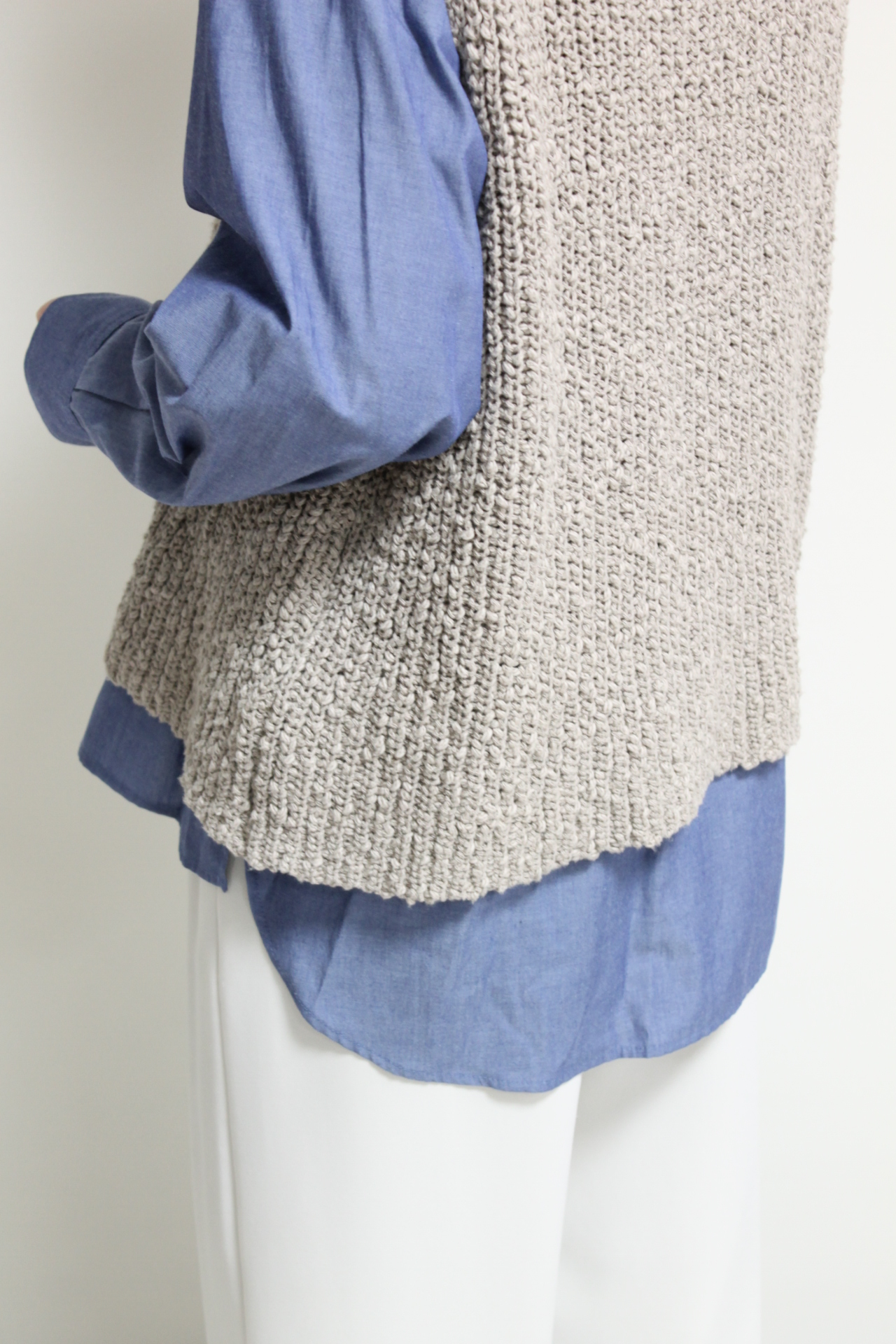 ↓↓シャツやカットソーに自由に合わせやすい!ロージー(ROSIEE)スラブヤーンニットベストは糸の太細で表面の立体感がアクセントが楽しめる一枚です。コットン90%にポリエステル10%・・ご自宅でお洗濯が出来るのがうれしいです。