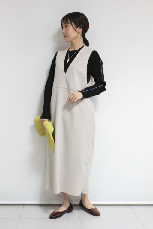 ↓↓着るだけでサマになるディニテコリエ(Dignite collier)ウーリージャージワンピースが入荷しました。ニットやカットソー、ブラウスなど、いろんなインナーが使えシンプルで着やすいジャンバースカートです◎「ライトベージュ」 15,000円(税込16,500円)ディニテコリエDignite collier