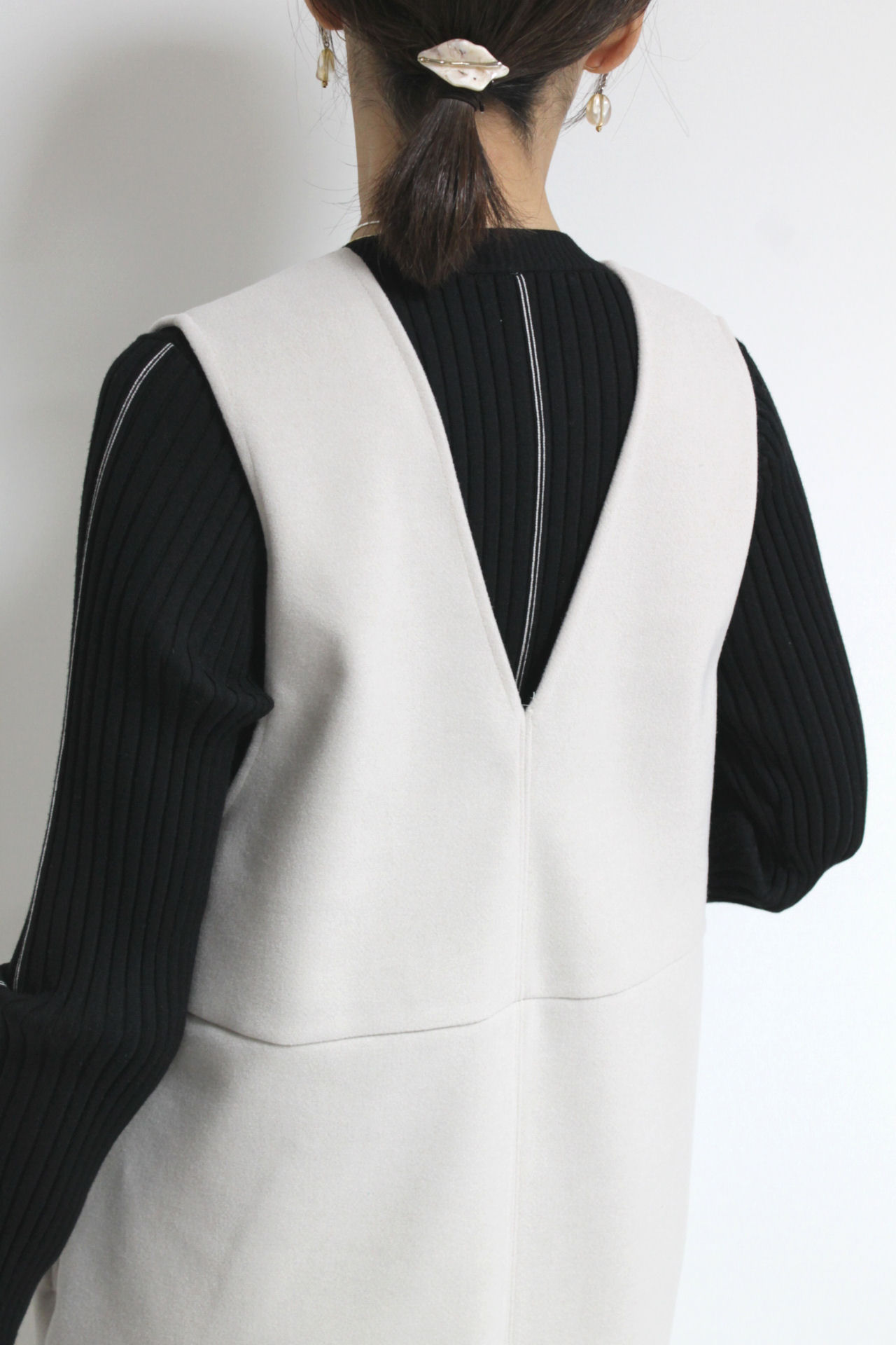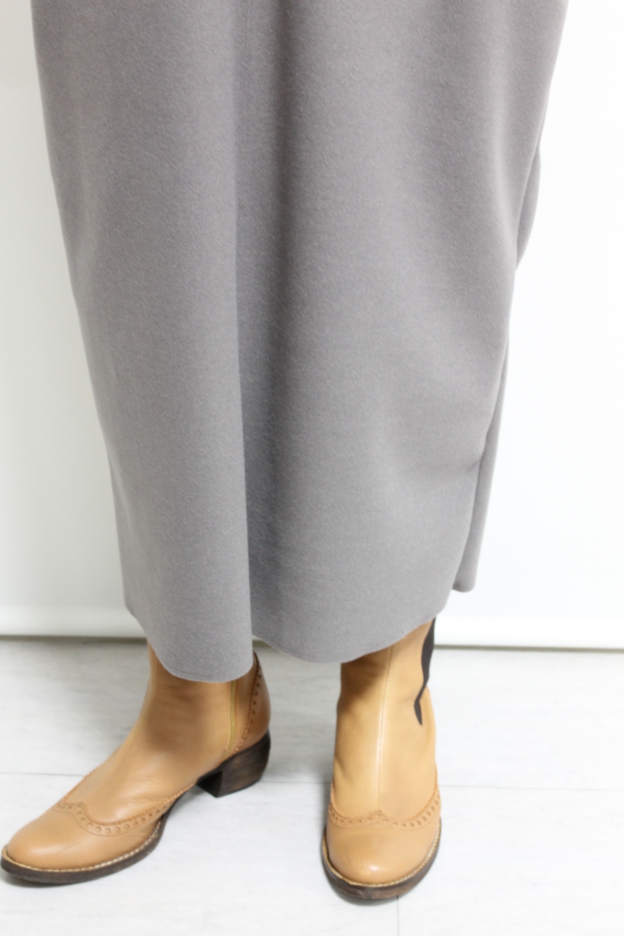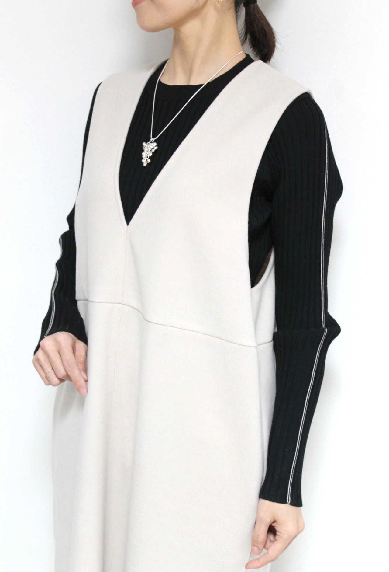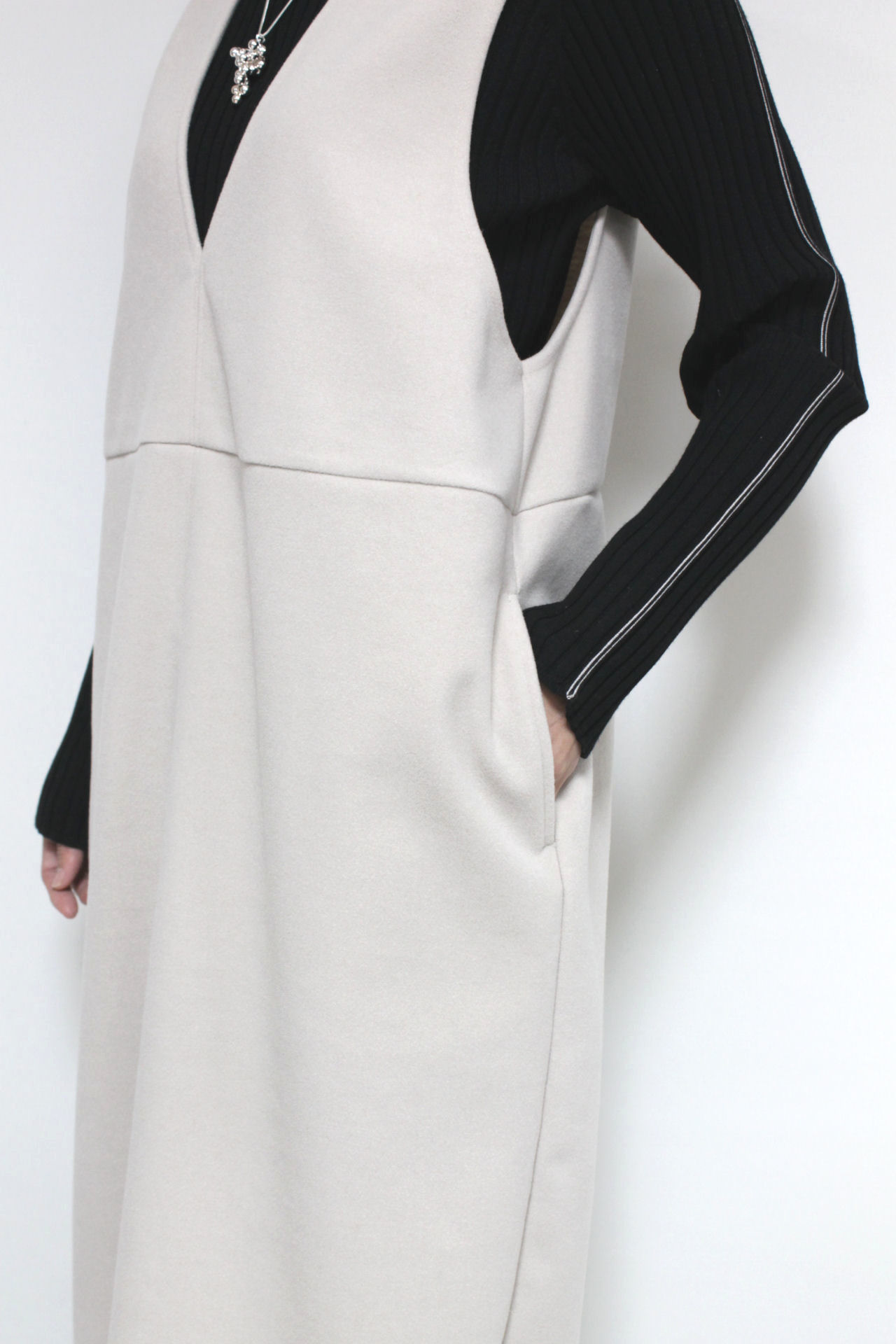 ↓↓スタイルアップして見える縦長のコクーンラインシルエット。「グレー」15,000円(税込16,500円)ディニテコリエDignite collier