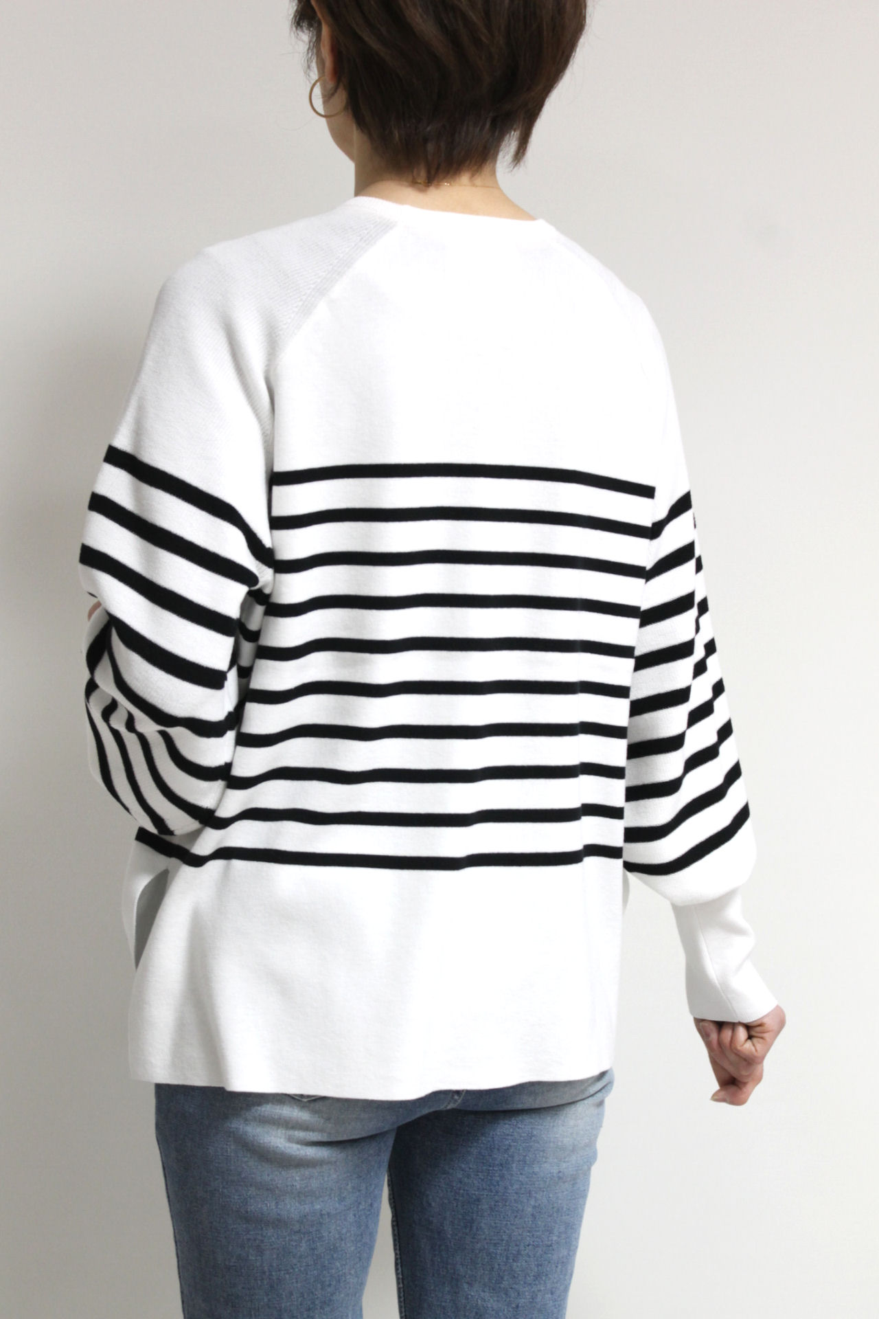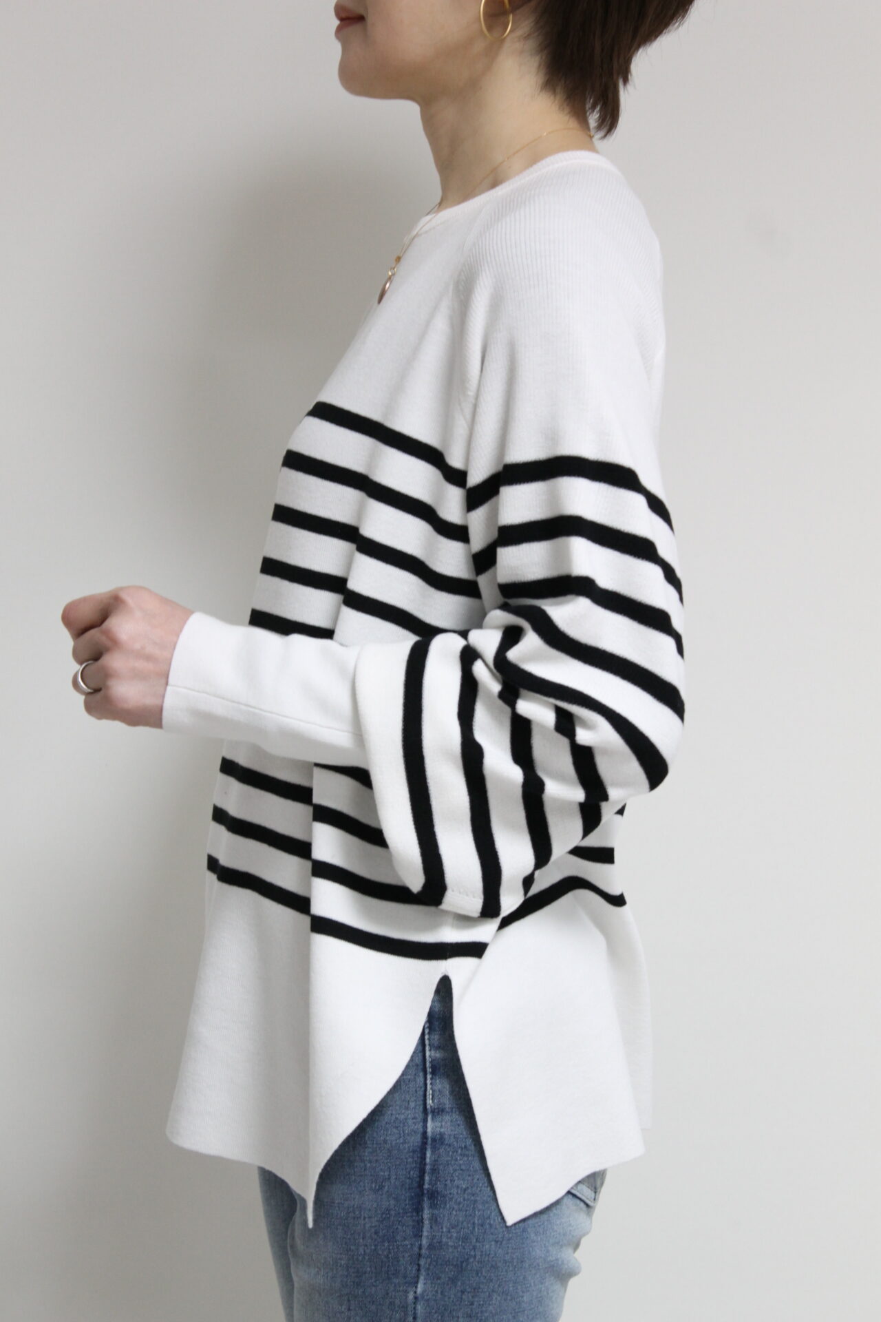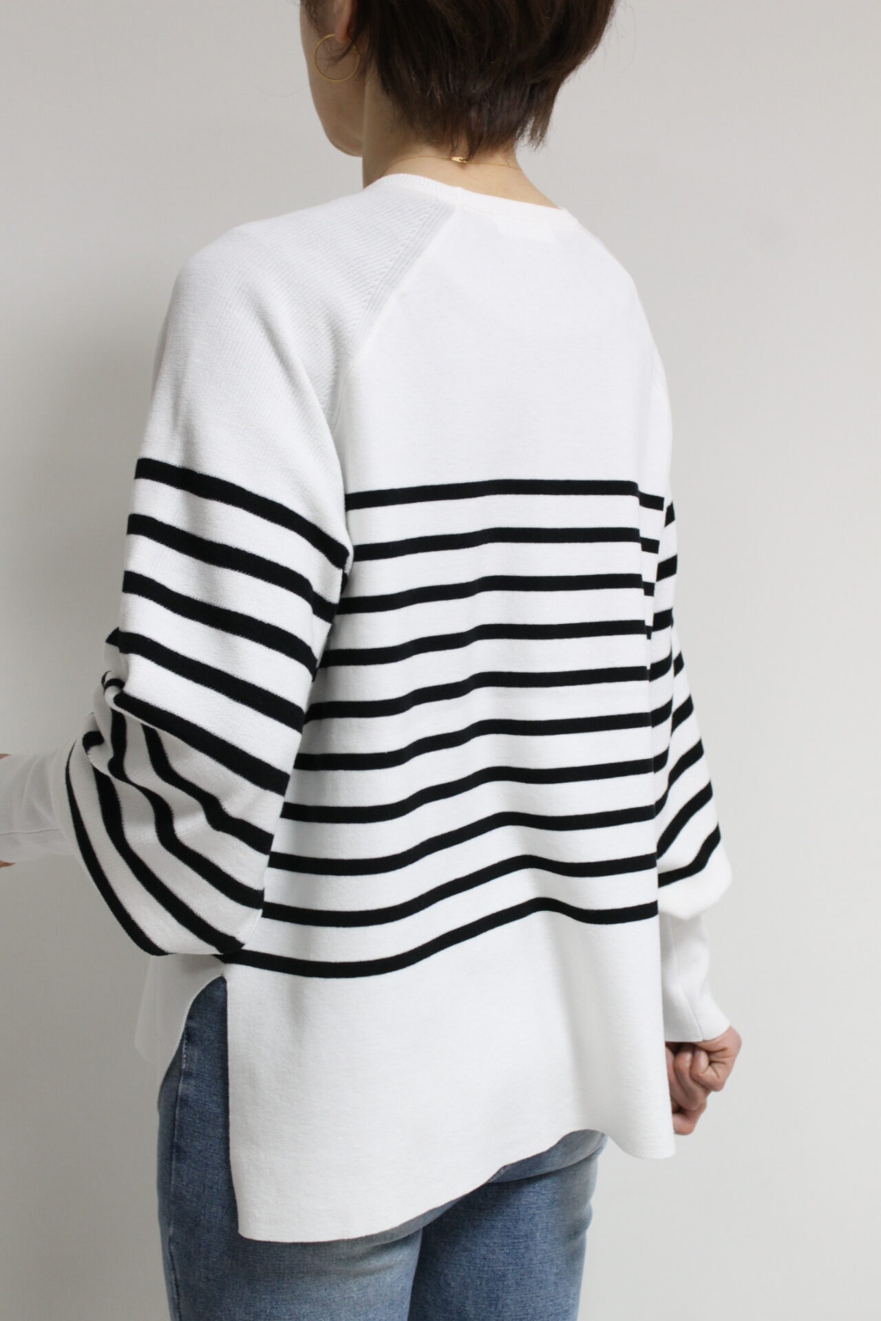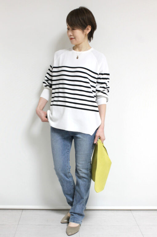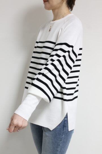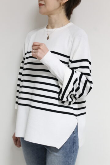 ↓↓「シンプルだけど、どこか少し違う」。こちらのボーダーも派手なデザインではないけれど着るとちゃんとおしゃれに見えます。14,000円(税込15,400円)パシオーネPASSIONE