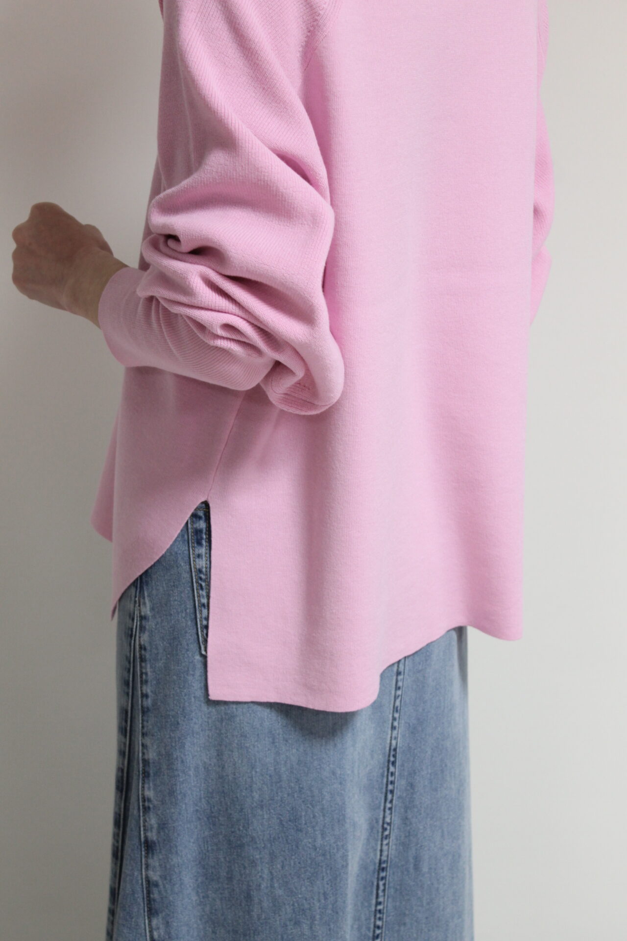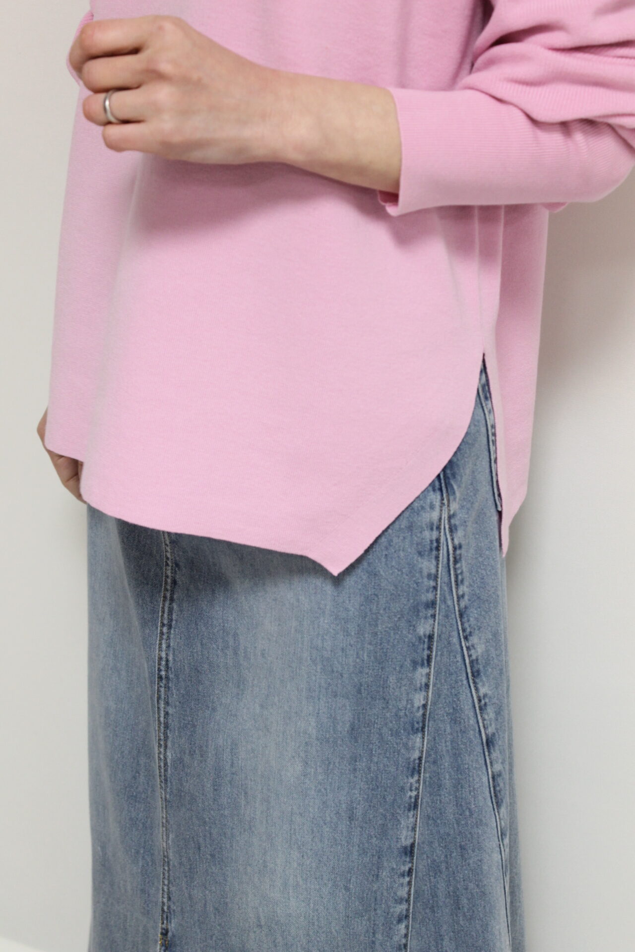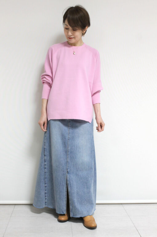 ↓↓桜の話題をしたのならやはりこちら。大人のピンクは“これくらい”がちょうどいい・・パシオーネ(PASSIONE)ロングリブニット。やわらかなピンクが顔まわりを明るく。大人でも取り入れやすい上品カラーです。14,000円(税込15,400円)パシオーネPASSIONE/センタースリットデニムスカート 15,000円(税込16,500円)カフネCAFUNE