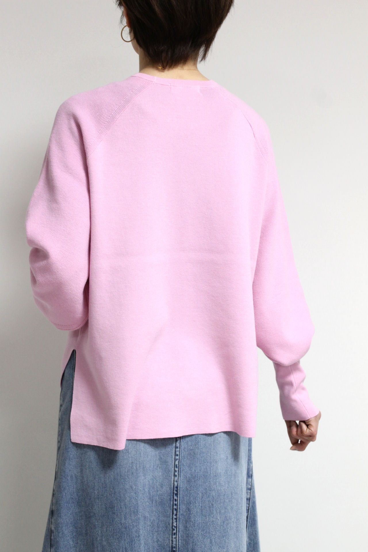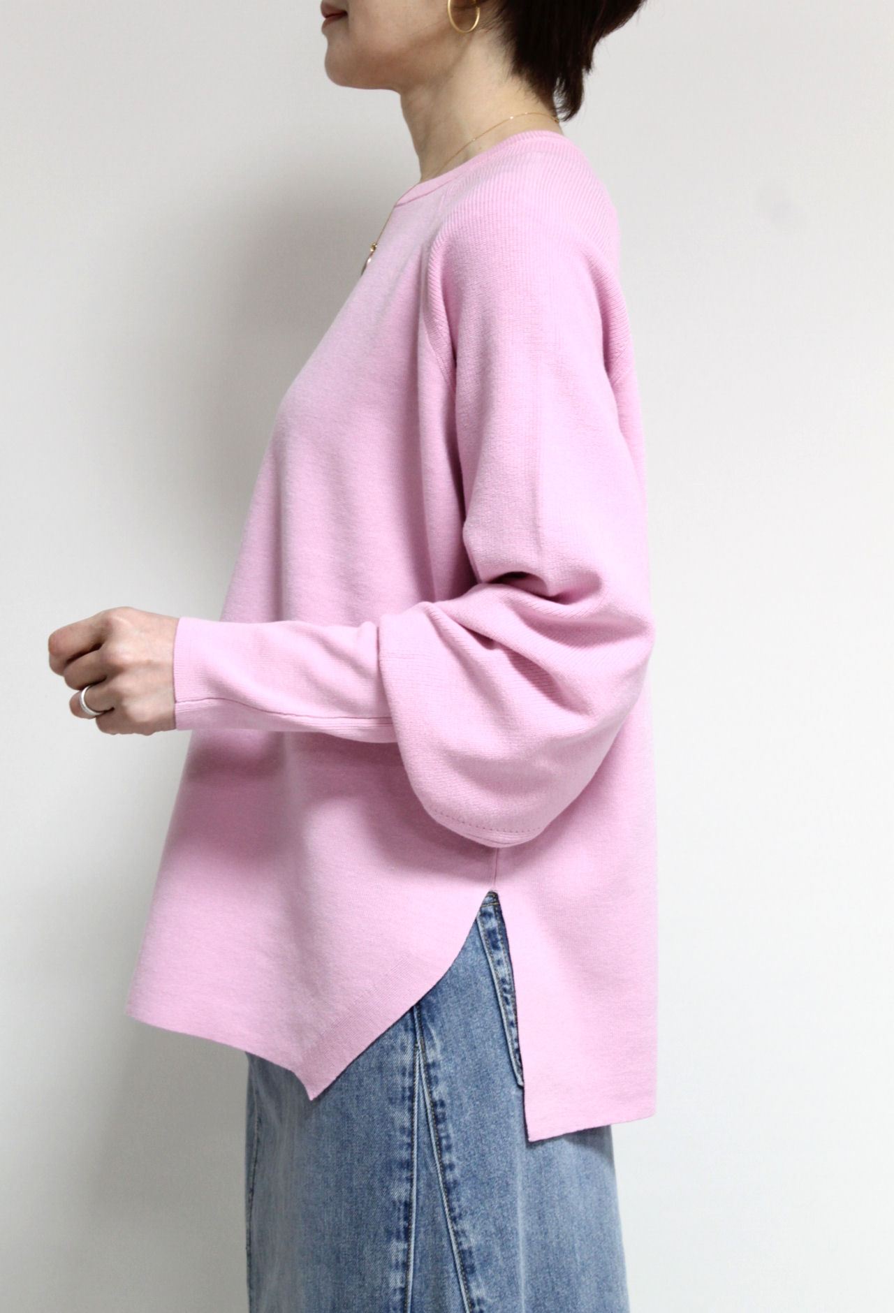 ↓↓袖のロングリブが手元をすっきり見せるニット。シンプルなのに着ると雰囲気が出る一枚✨