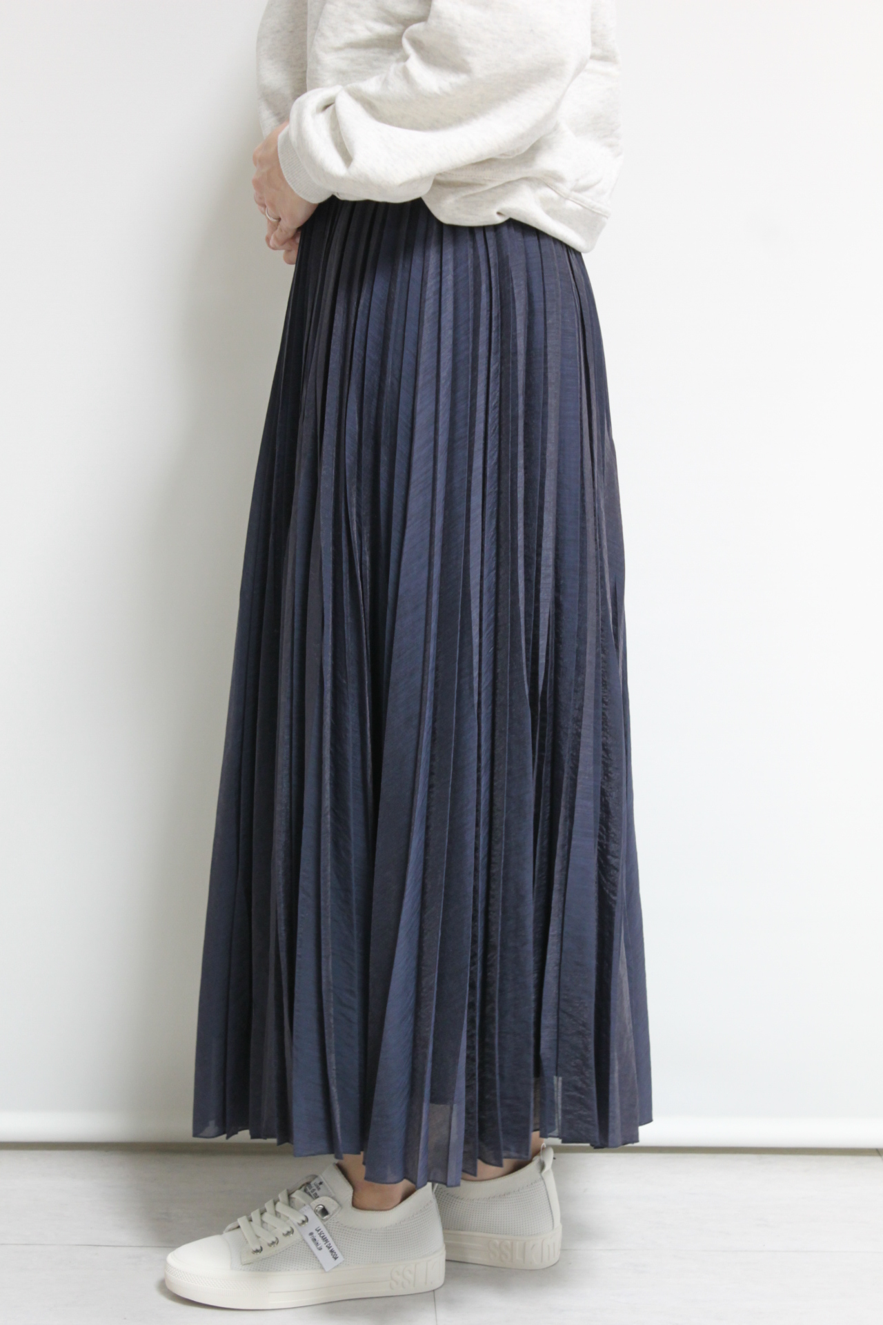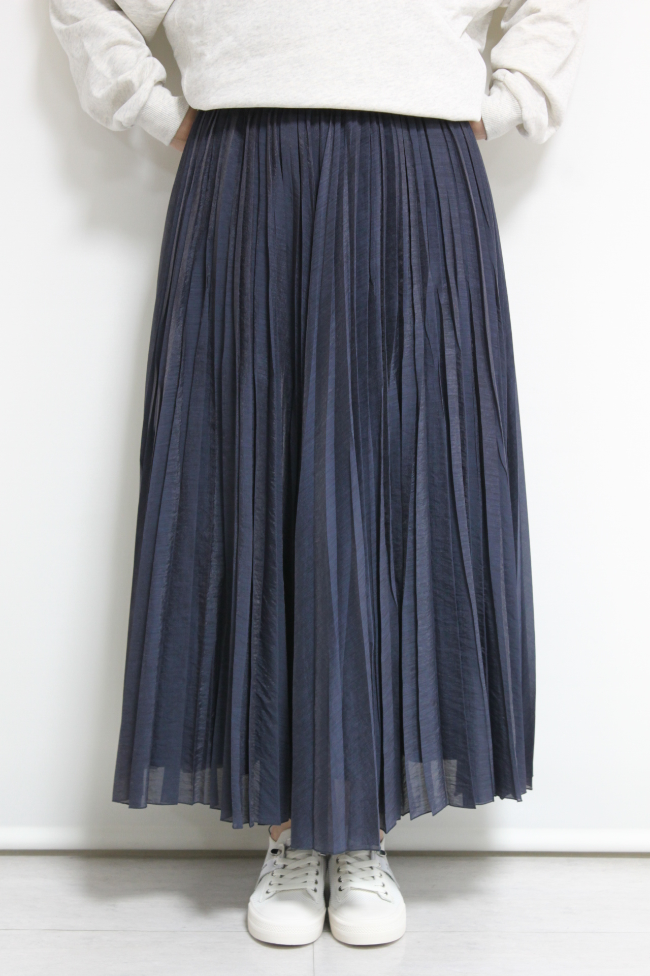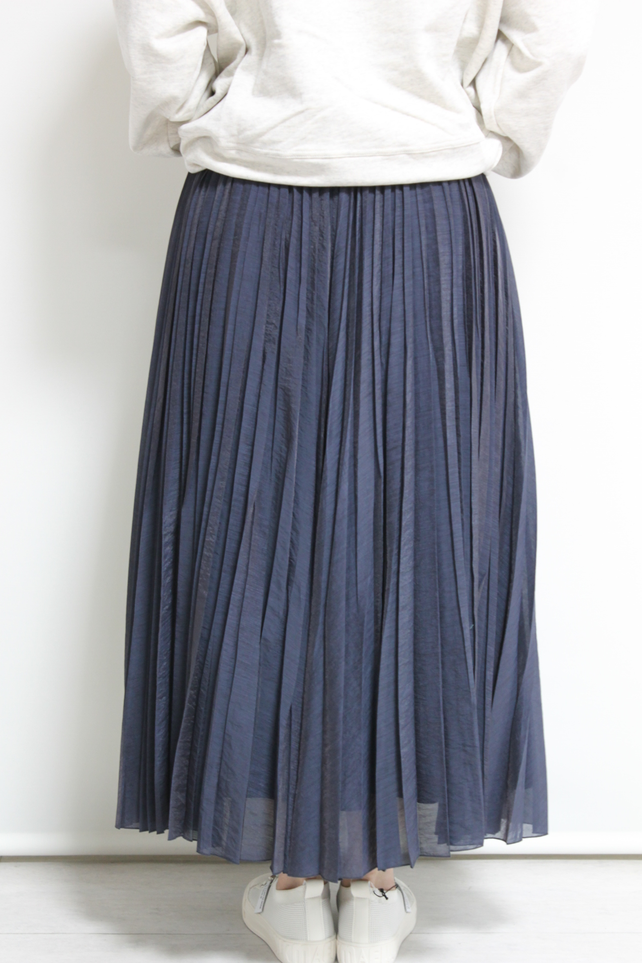 ↓↓ウエストはゴム仕様でリラックス感のある履き心地。軽やかな生地でロング丈でも重たく見えないのがポイントです◎