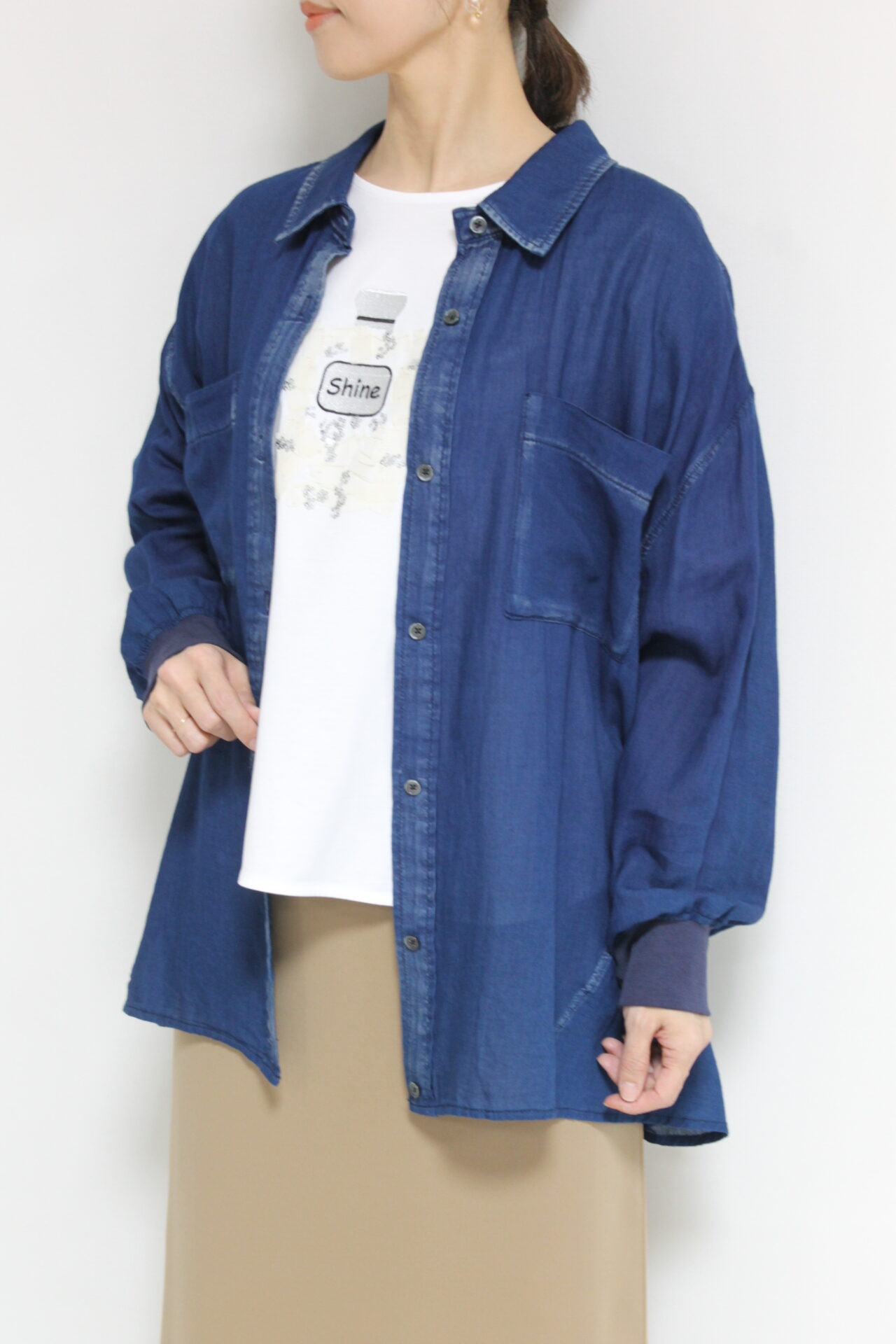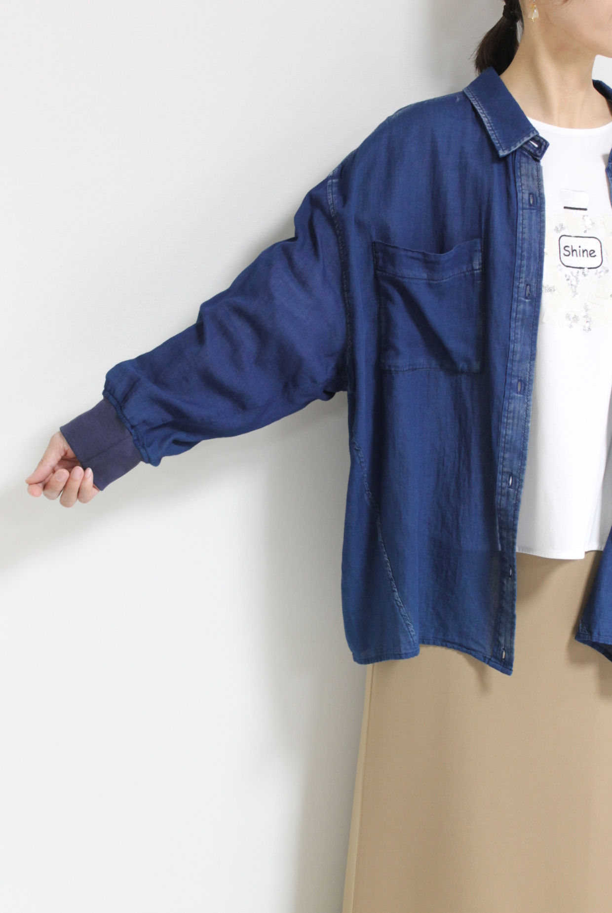 デニム見えするのに驚くほど軽やかなシアー素材で、羽織るだけで今っぽい抜け感が完成します。
