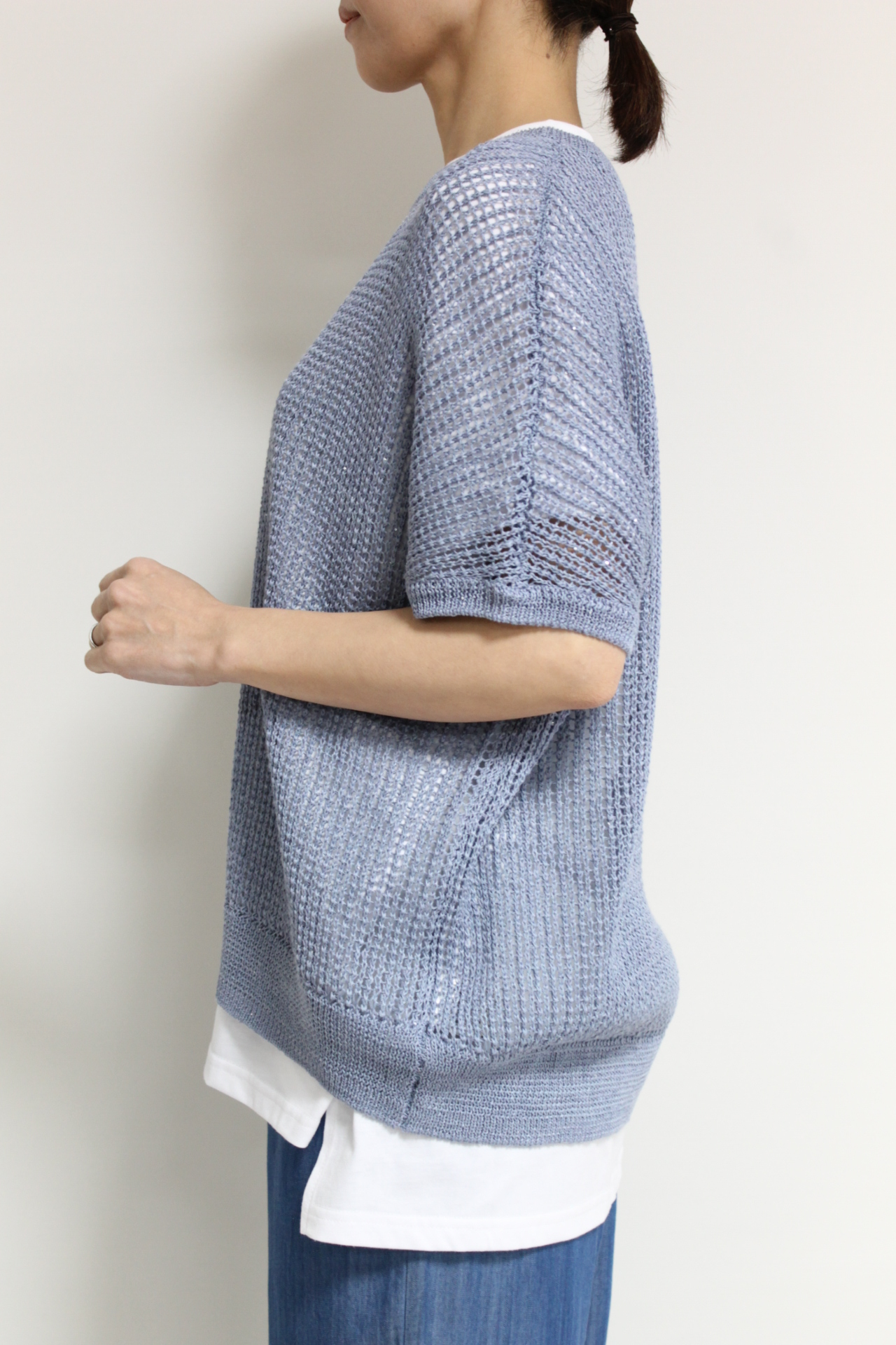 ↓↓透け感があることで見た目にも涼しげで、春から夏、初秋までロングシーズン活躍します。