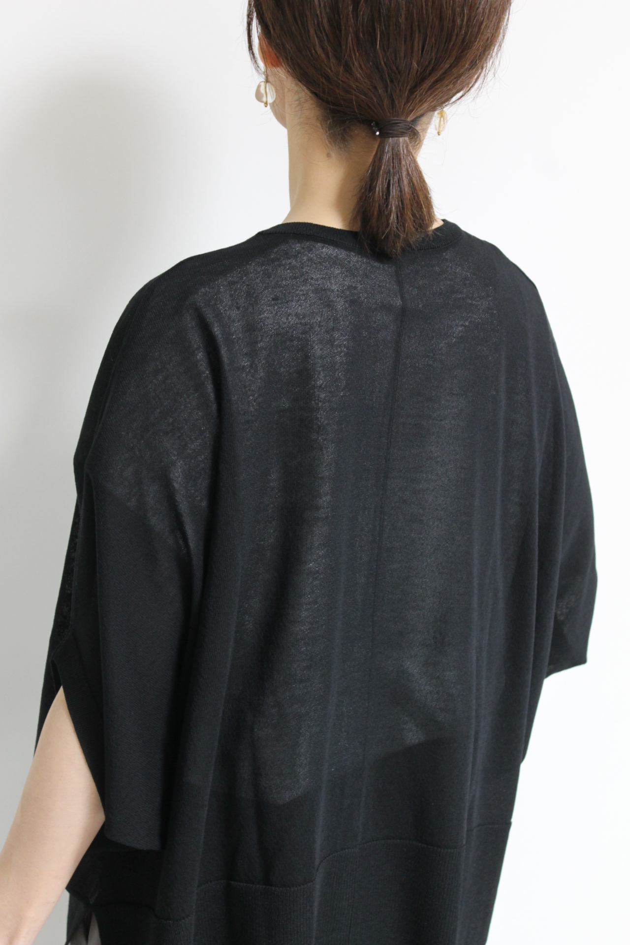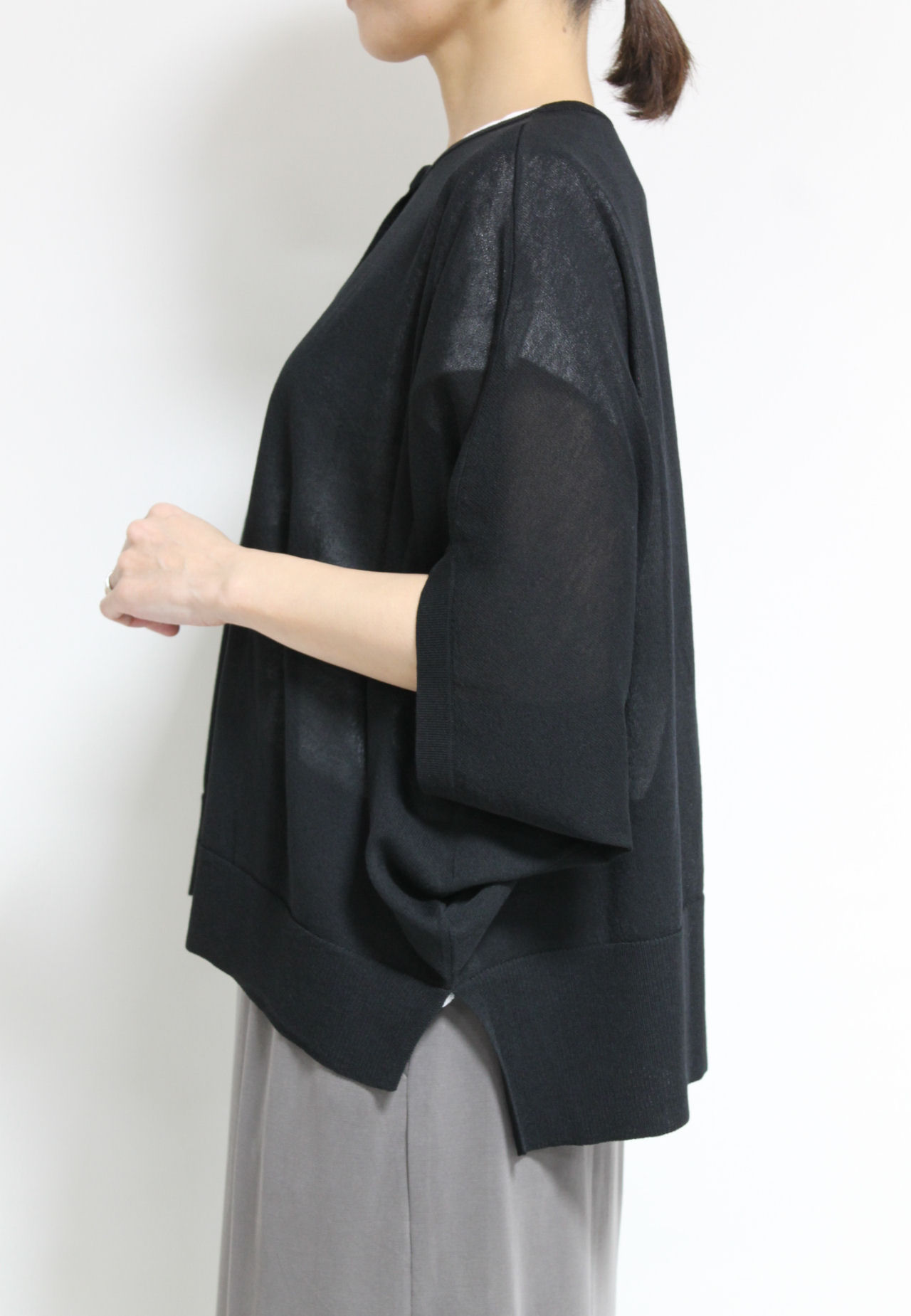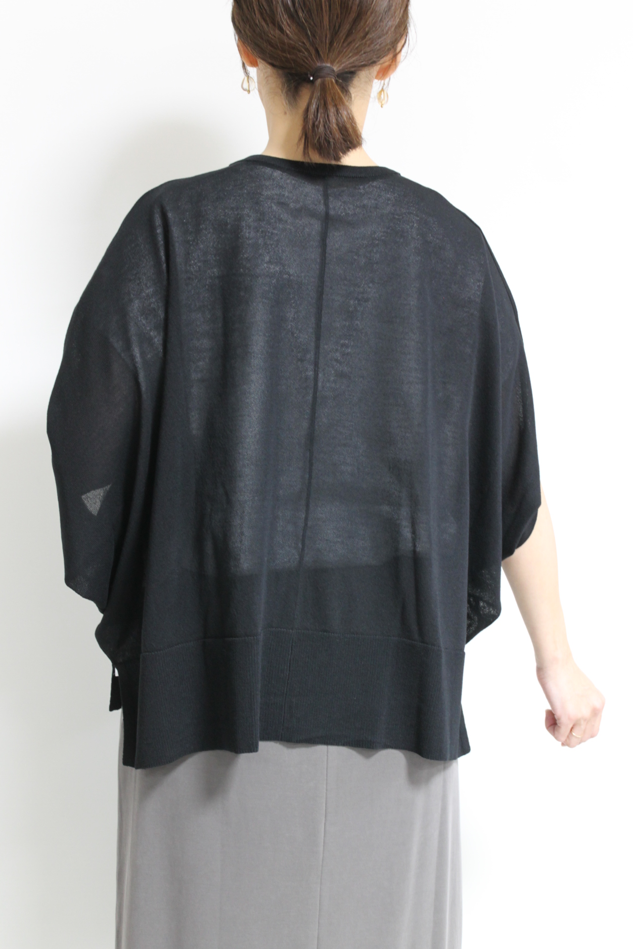 ↓↓黒でもほんのり透けるから重たくならず軽やかな印象に。シックな中にやさしさを感じる大人のための一枚です。