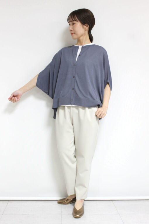 ↓↓まっ・・そんなことで(笑)・・さっそくご紹介したいのがシュガーローズ(Sugar Rose)のドルマンポンチョ風カーディガン。シンプルながら一枚でサマになる、季節の変わり目に重宝するアイテムです◎ 13,000円(税込14,300円)シュガーローズSugar Rose/マルチパンツ16,000円(税込17,600円)ソーノSONO