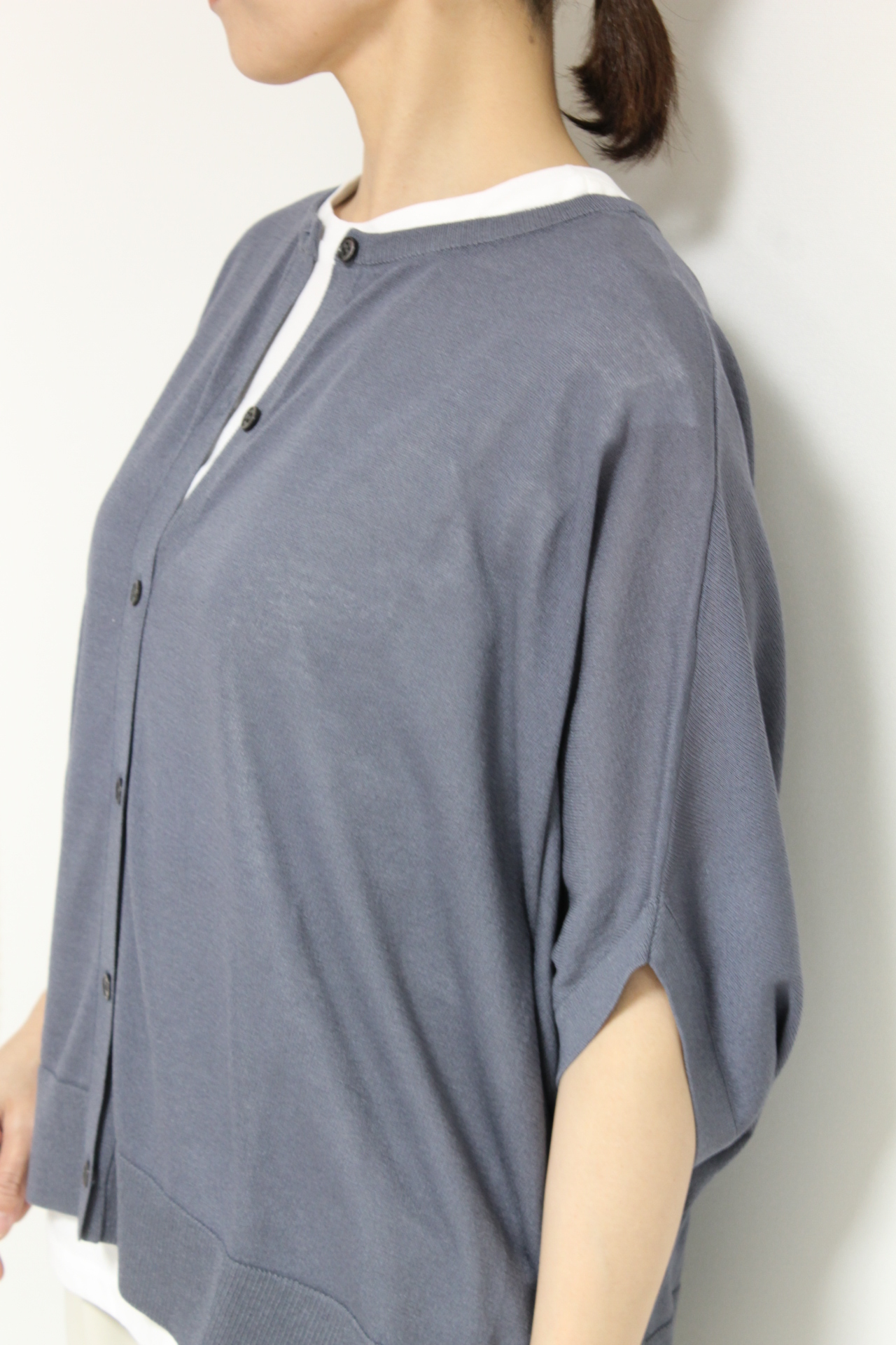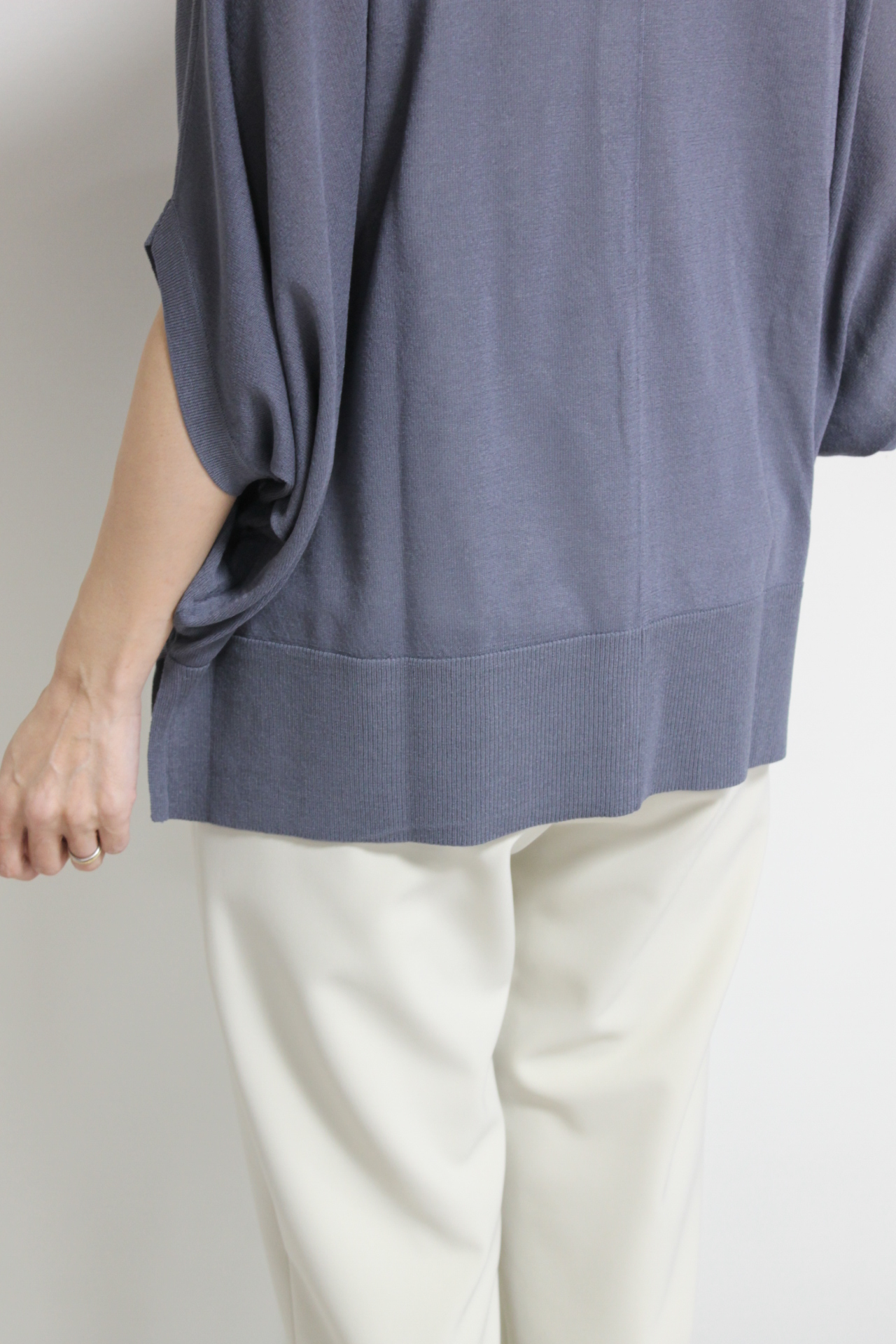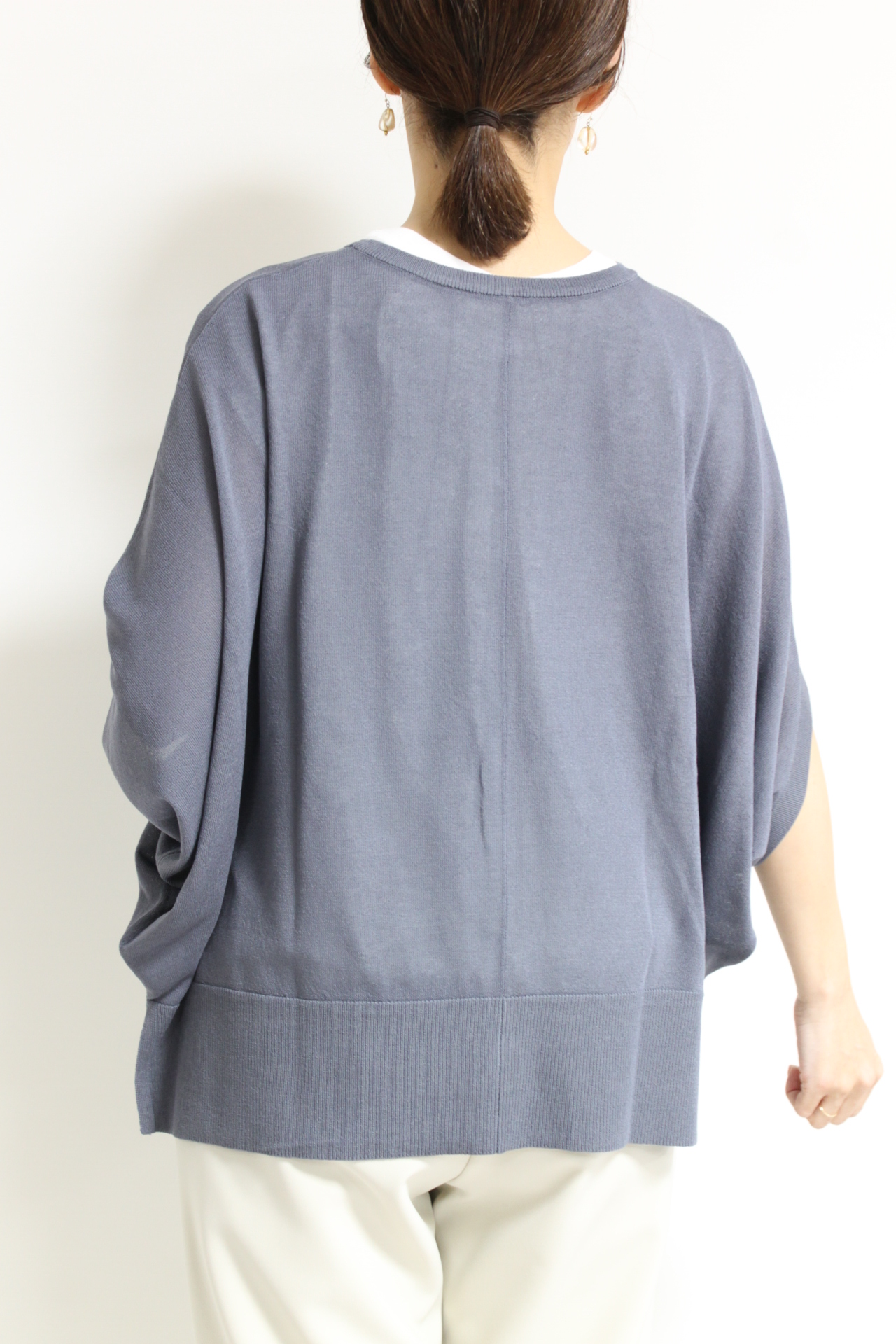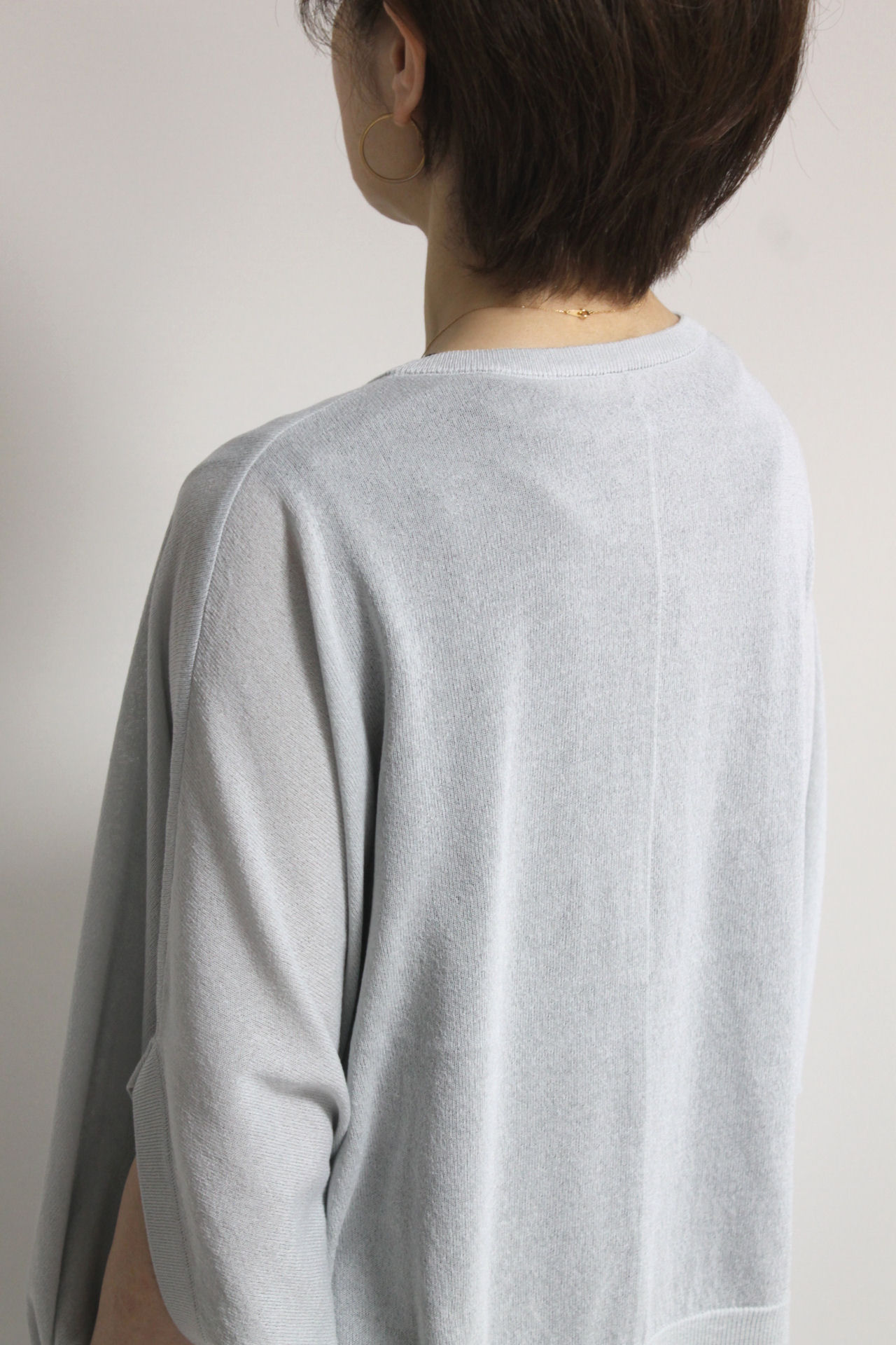 ↓↓腕まわりにゆとりがあるので動きやすく体型を選ばず着られるのも魅力。シンプルなアイテムでも着るだけでこなれた印象に仕上がるのがドルマンスリーブの良さです。