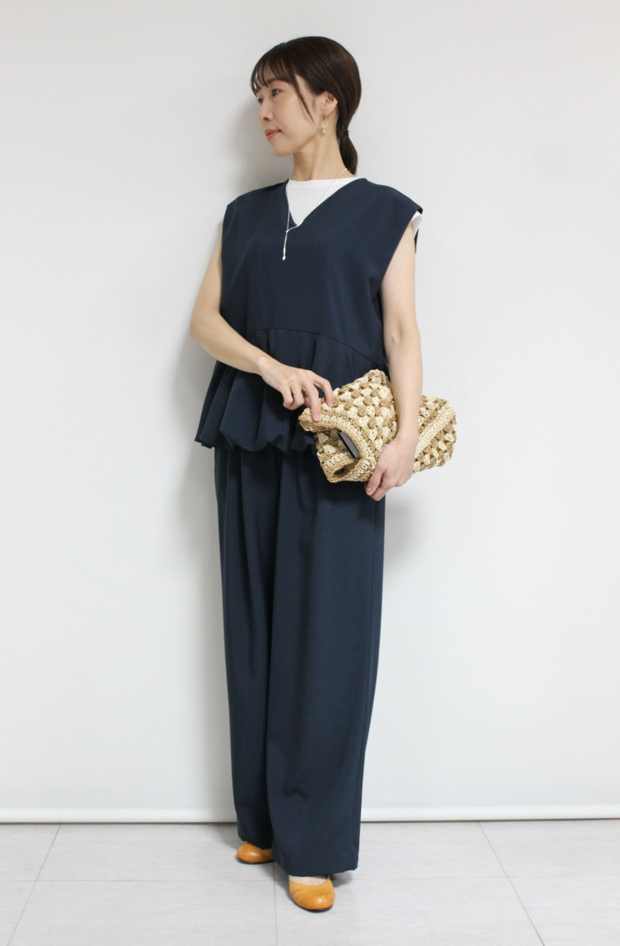 ↓↓ディニテコリエ(Dignite Collier)から裾に丸みを持たせたバルーンシルエットのノースリーブトップスと落ち感のあるギャザーワイドパンツのセットアップが入荷です。きちんと感とリラックス感を両立しながら、この完成度。この価格帯で手に入る優秀セット。 16,800円(税込18,480円)ディニテコリエDignite Collier