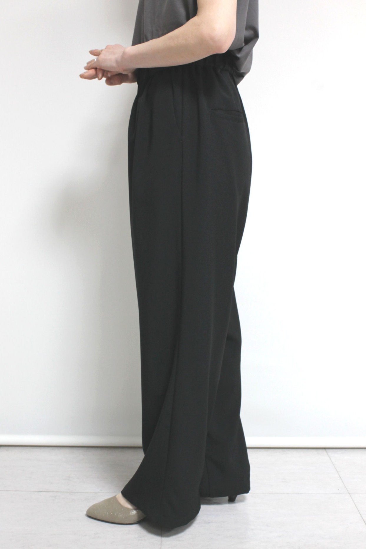↓↓落ち感のあるギャザーワイドパンツは、広がりすぎずすっきり見え。動くたびに揺れる上品なシルエットが魅力です。
