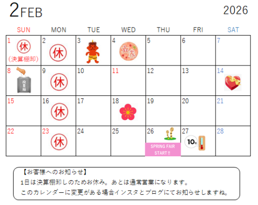 いつもご愛顧いただきありがとうございます🙂 まずお知らせです。 1日は決算棚卸のため、いきなりの「お休み」で....