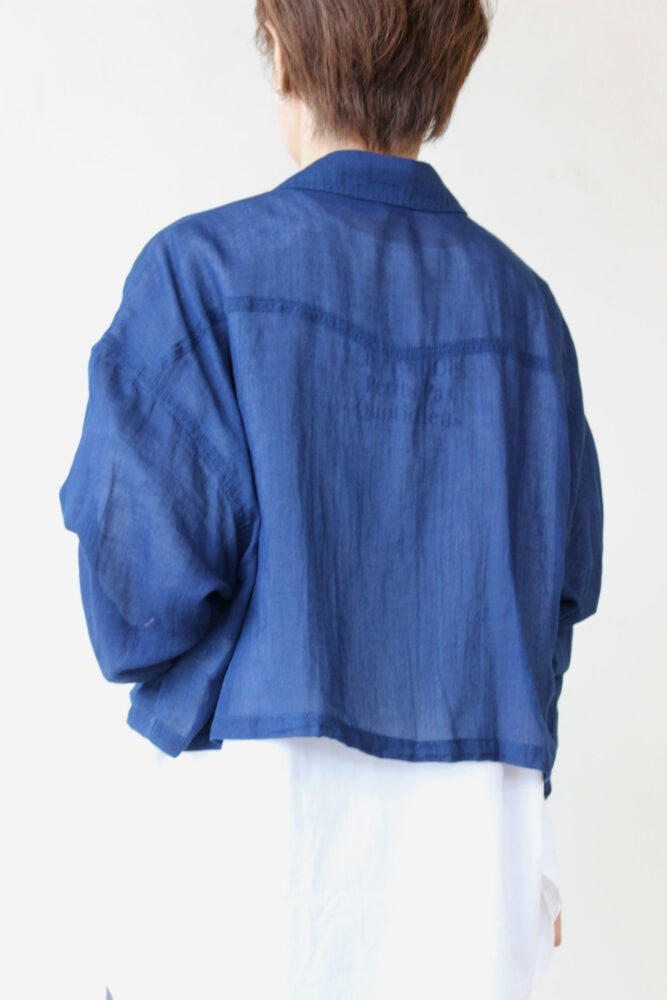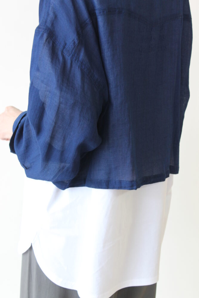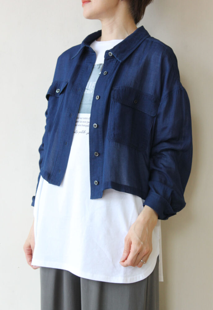 【こなれ感デニムシャツ】ディニテコリエ(Dignite Collier)ショート丈シアーデニムシャツ/ネイビー