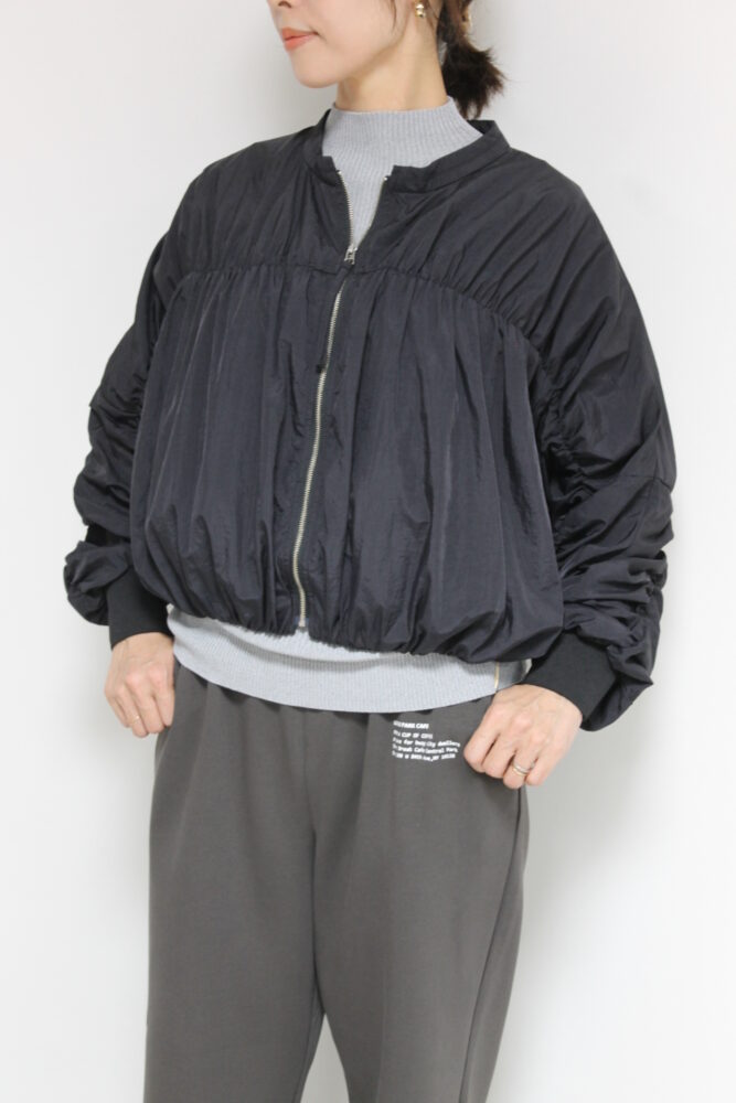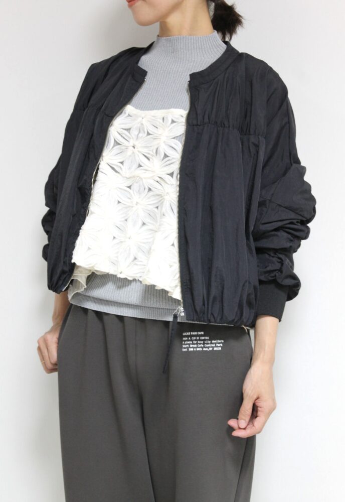 薄手の素材で秋始めのアウターとしてオススメ!ディニテコリエ(Dignite Collier)シャーリングブルゾン。胸から袖にかけてゴムが入りニュアンスのあるラインを作ります。袖口はみなさんが大好きなリブ。バランスの取りやすいショート丈で、どんなスタイリングにもマッチする1枚です◎ 詳細はブログで