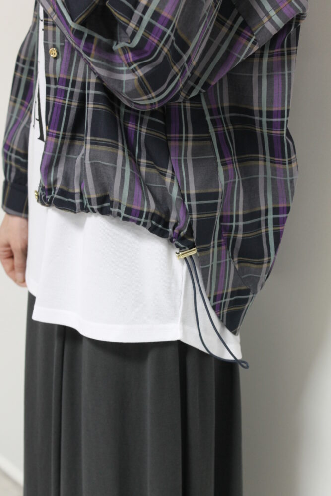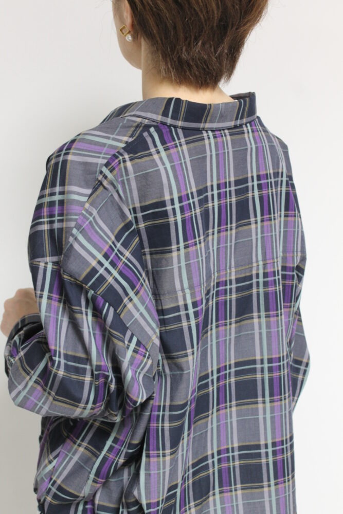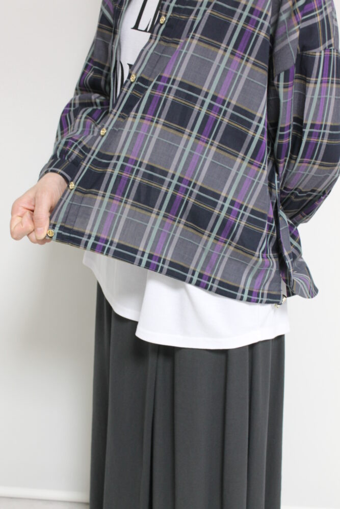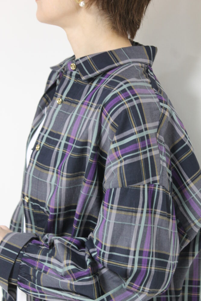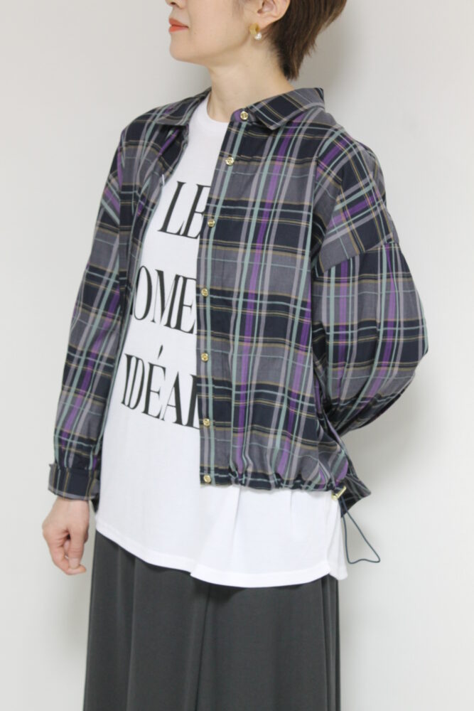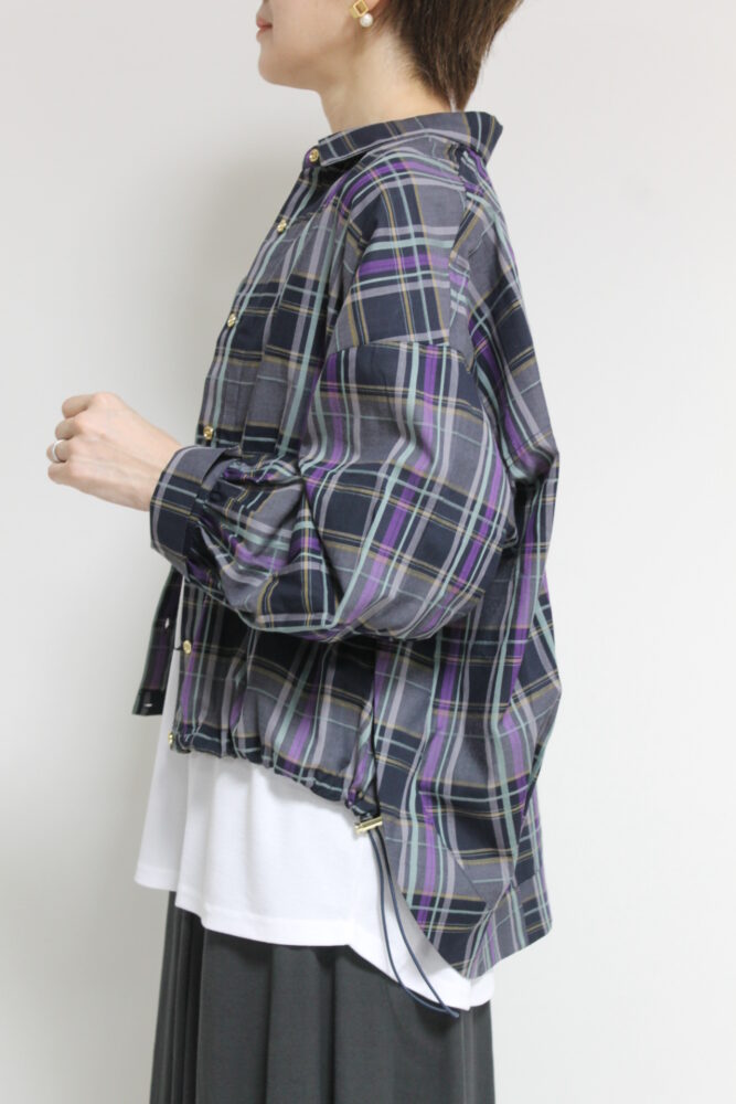 ルクールブラン(le.coeur blanc)ドロストチェックシャツ/パープル系