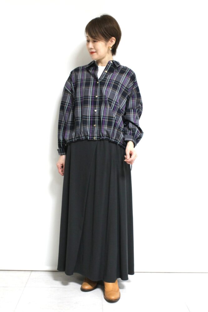 深みのある色使いが秋らしいルクールブラン(le.coeur blanc)ドロストチェックシャツ。裾のドロストコードを絞って、こなれ感のあるスタイリングがおすすめ。ボタンを閉じて一枚で着るのはもちろん、軽めの羽織りとしても使えます☆ 詳細はブログで