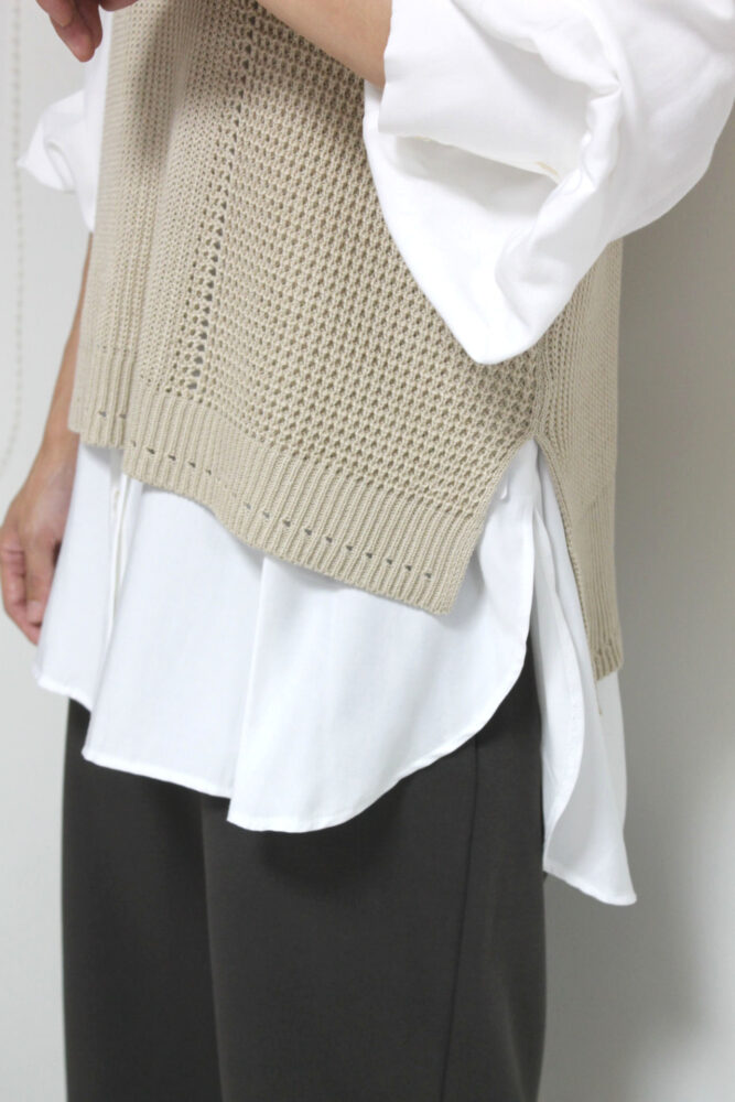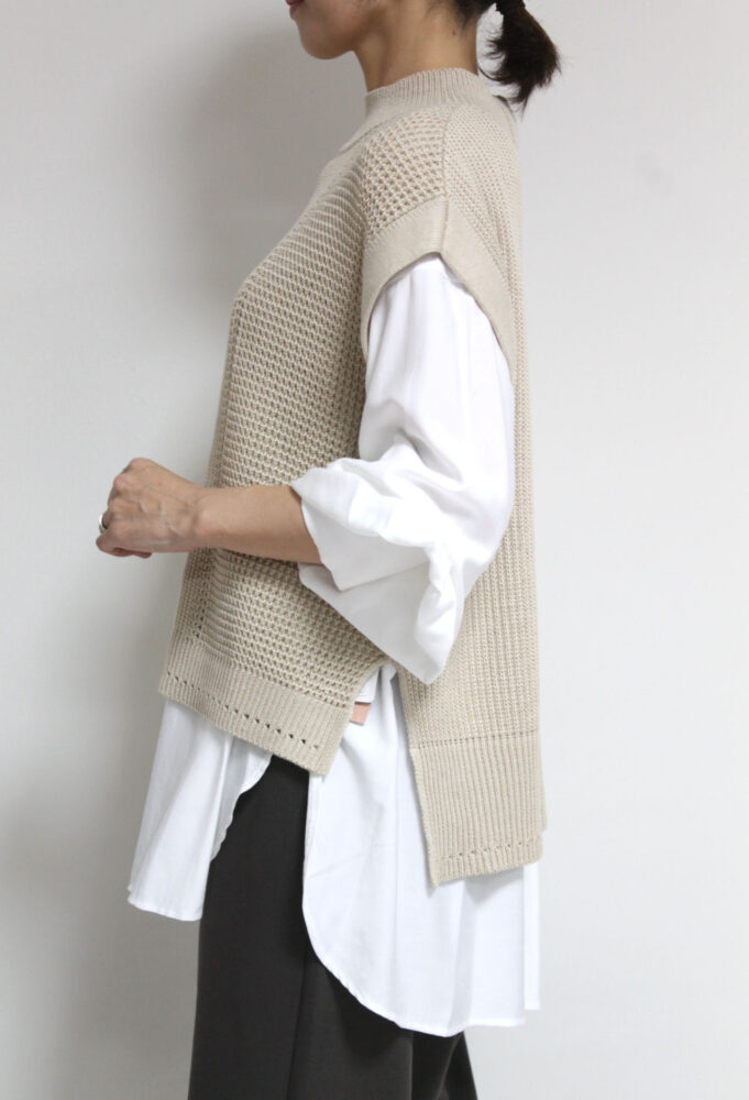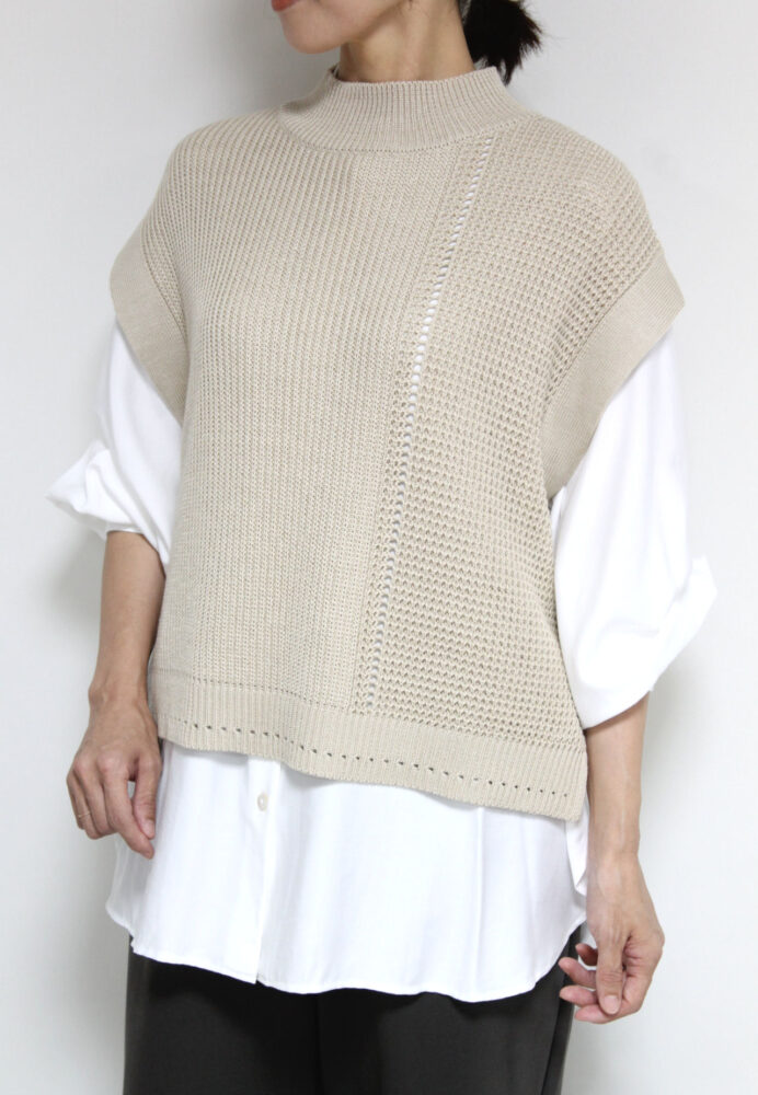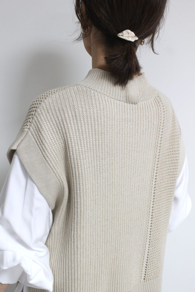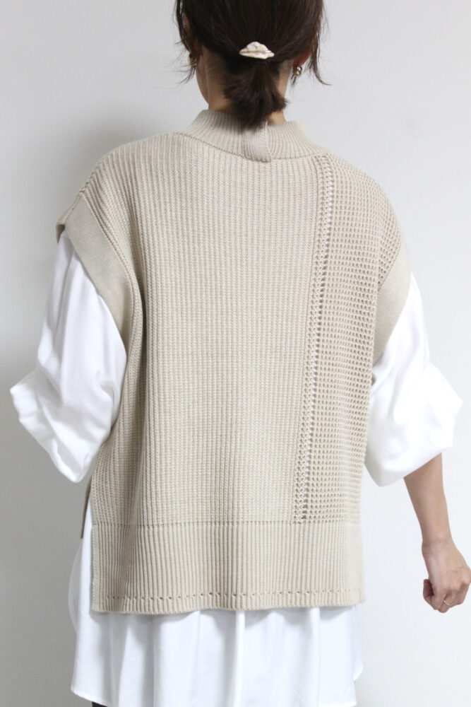 コムアンファム (comme une femme)編地切替ハイネックベスト/ベージュ