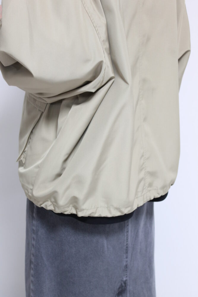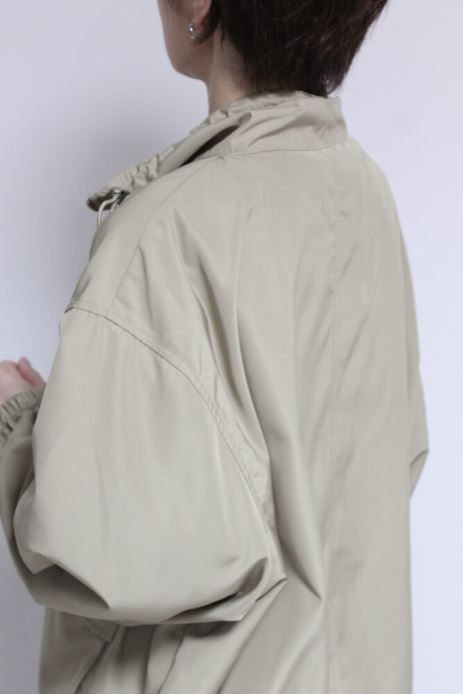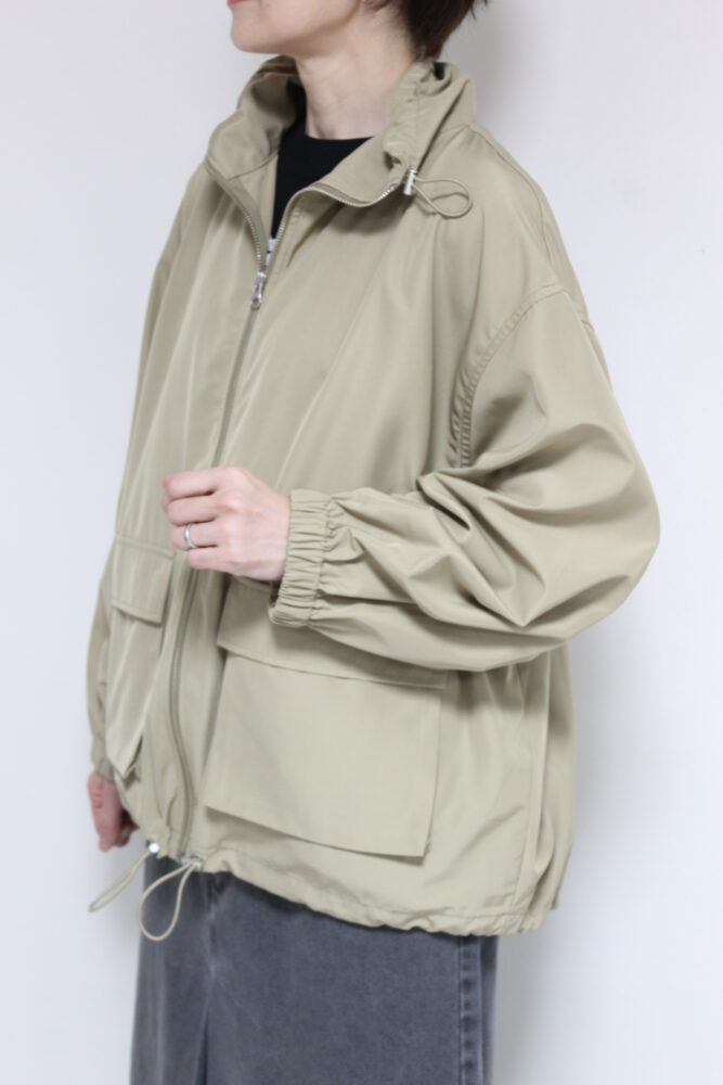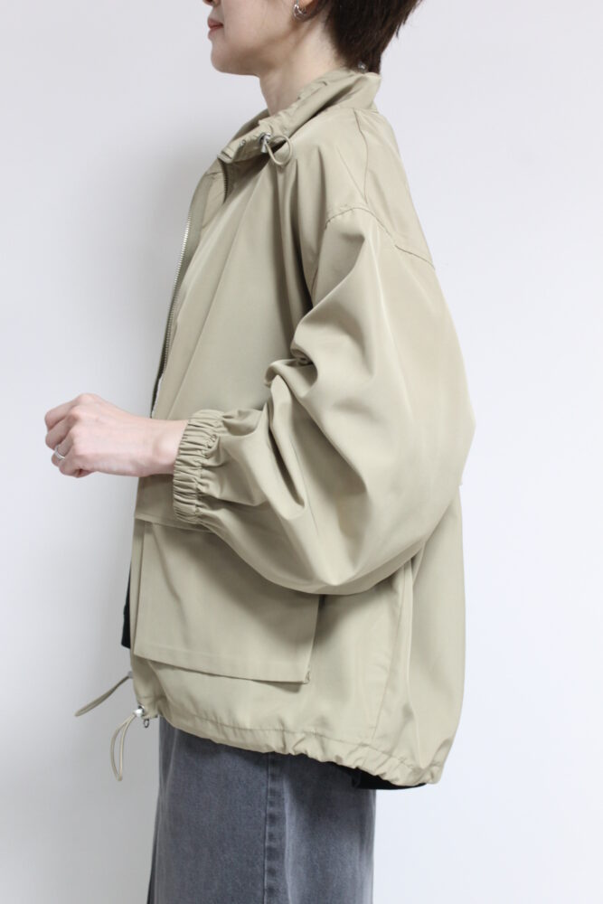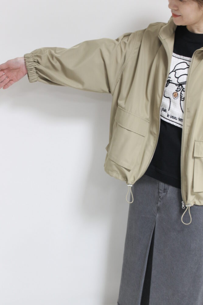 マリードール(MARIED'OR)ハイネックビックポケットブルゾン。ポリエステルの少し光沢のある生地を使用。衿口が絞れるハイネックでラフにざっくりと羽織れるサイズ感に仕上げました。立体的なポケットがアクセントになっており、衿口と袖のドローコードでお好きなシルエットを楽しめます。秋風が吹き始めたらデイリーに活躍するブルゾンです!