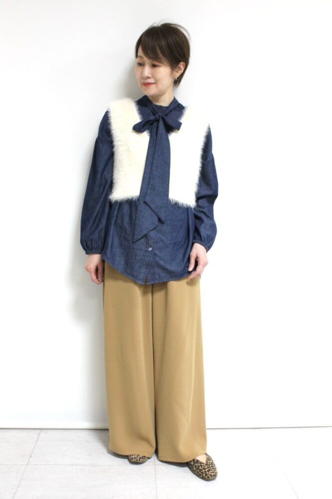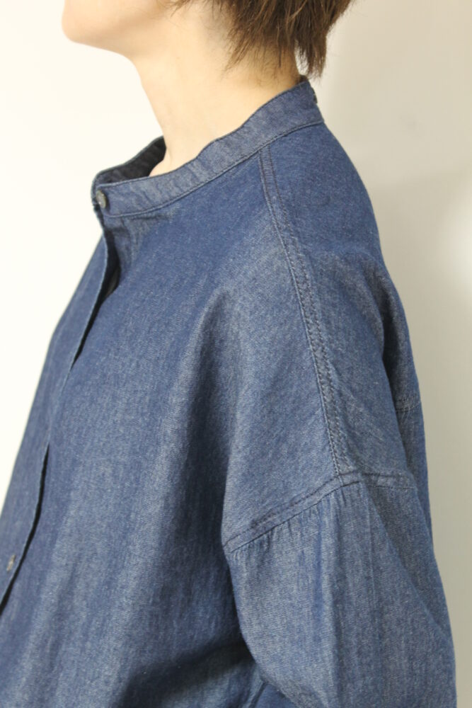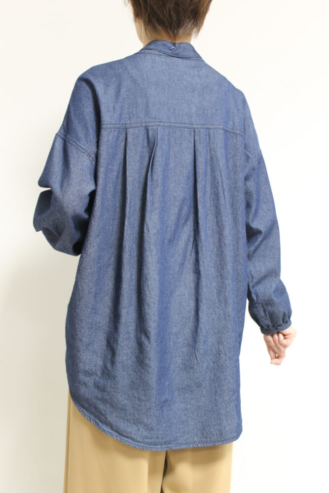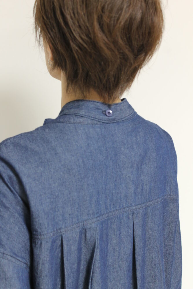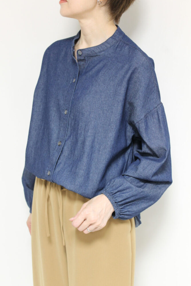ボウタイディテールがフェミニンな要素をプラスするディニテコリエ(Dignite Collier)ライトデニムブラウス。ボウタイは衿後ろのボタンで取り外すことが出来るのでシンプルなデニムシャツとしても着ていただけます。袖はゴム仕様でプッシュアップも楽々◎
