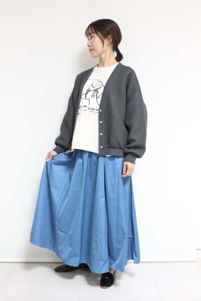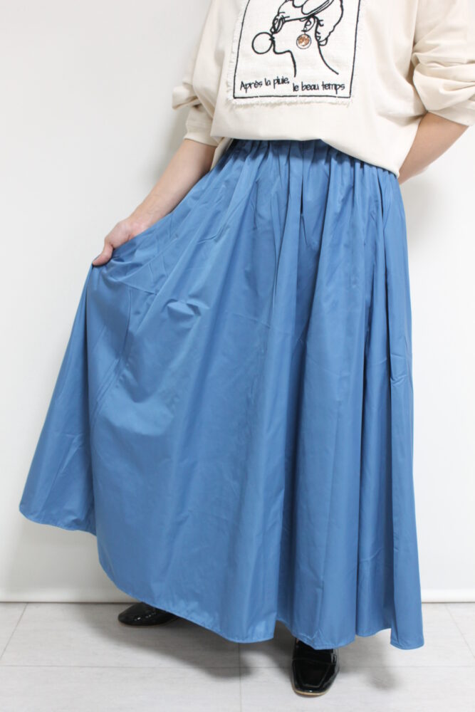 軽やかなタフタ素材を使用したブランコイブリロ(blanco y brillo)フレアスカート。上品な光沢感と程よいハリ感が魅力です。ウエストは平ゴムでイージーな着心地。普段使いからきれいめスタイルまで幅広く活躍します◎ 詳細はブログで
