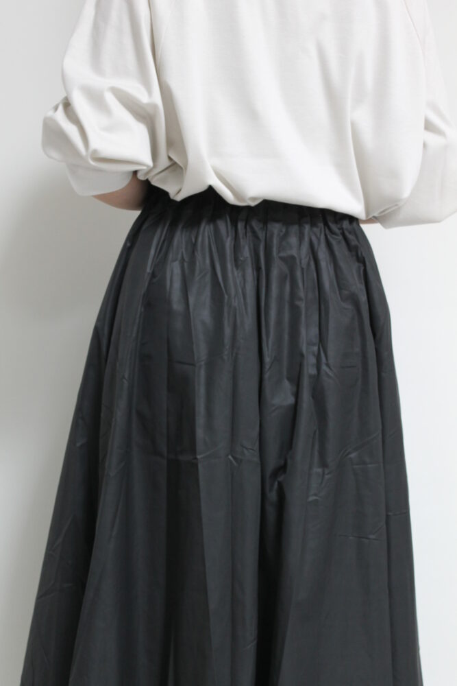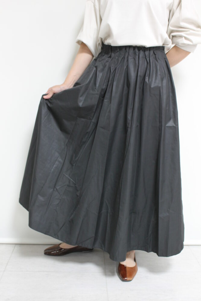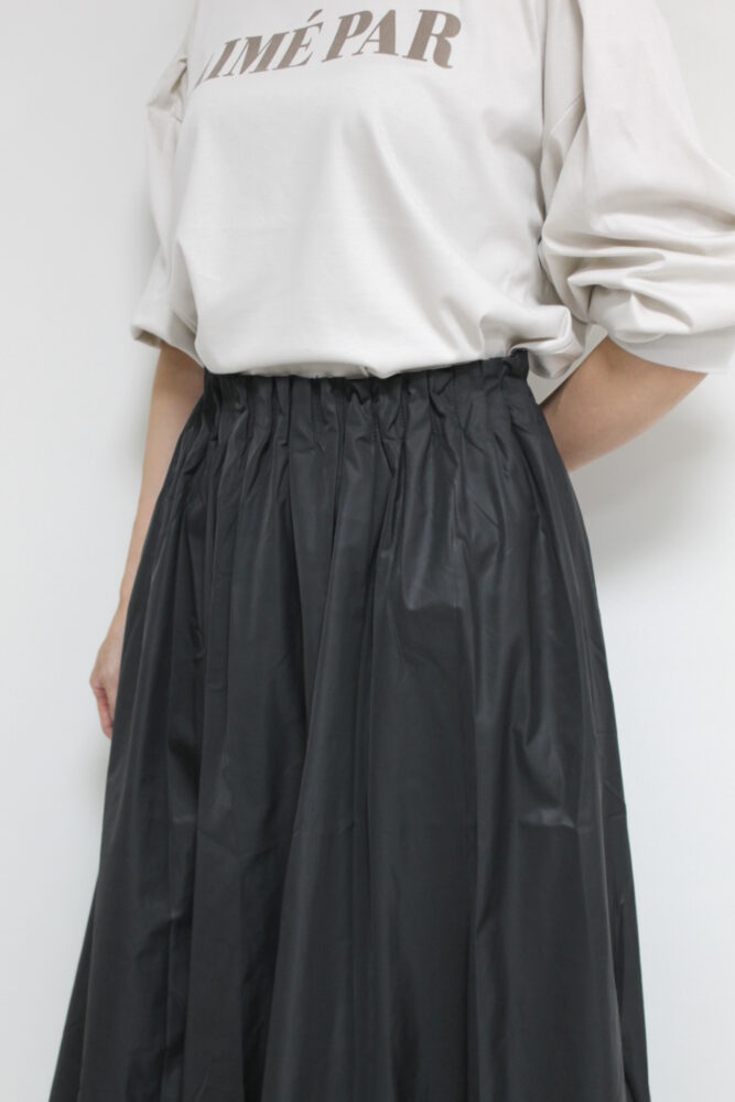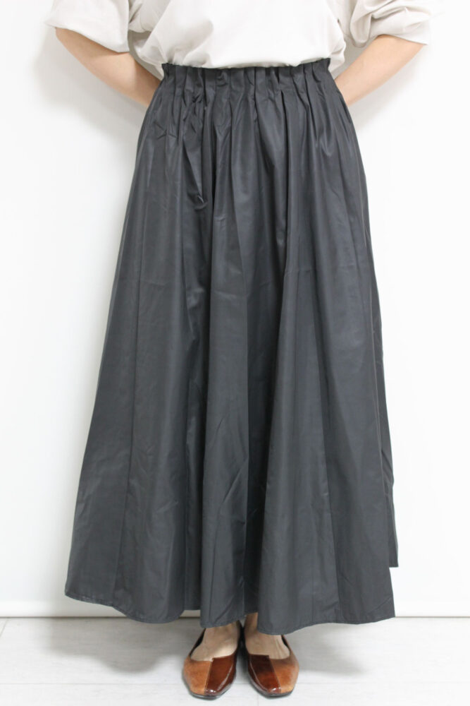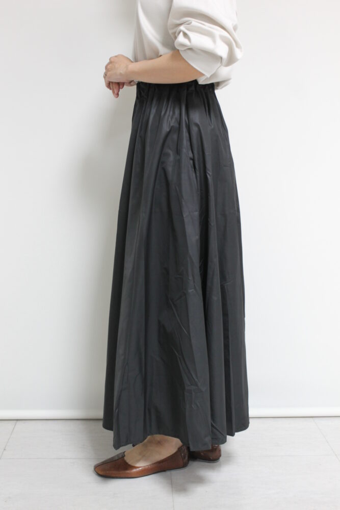 軽やかなタフタ素材を使用したブランコイブリロ(blanco y brillo)フレアスカート。上品な光沢感と程よいハリ感が魅力です。ウエストは平ゴムでイージーな着心地。普段使いからきれいめスタイルまで幅広く活躍します◎ 詳細はブログで