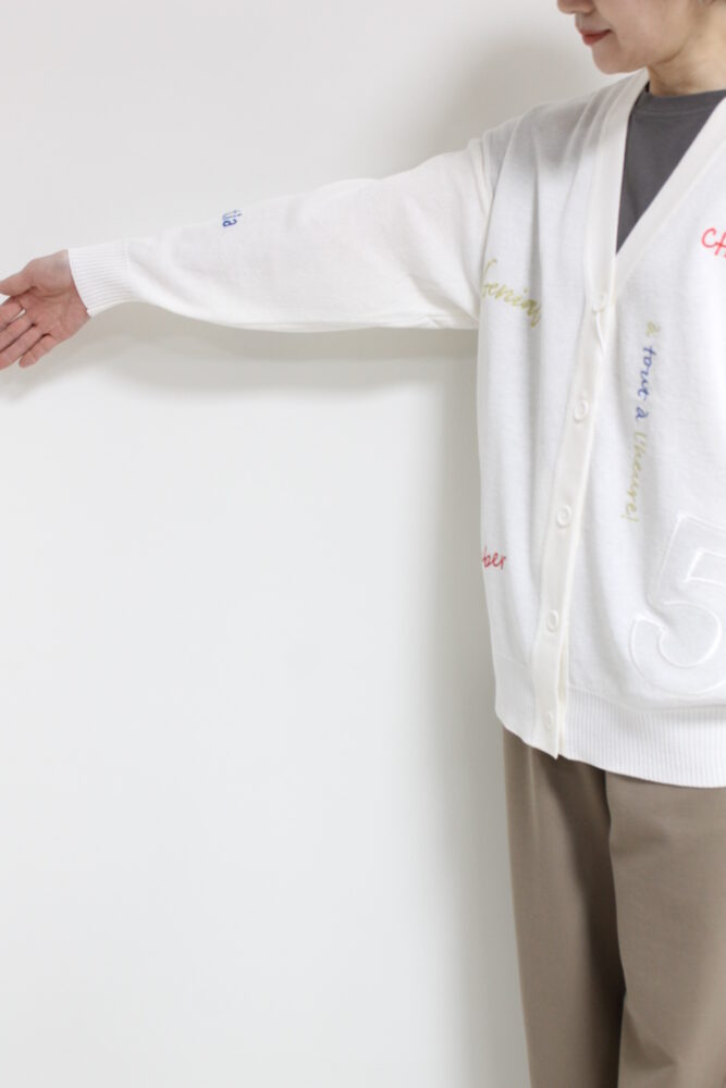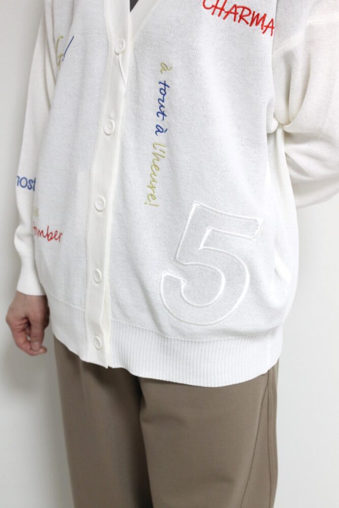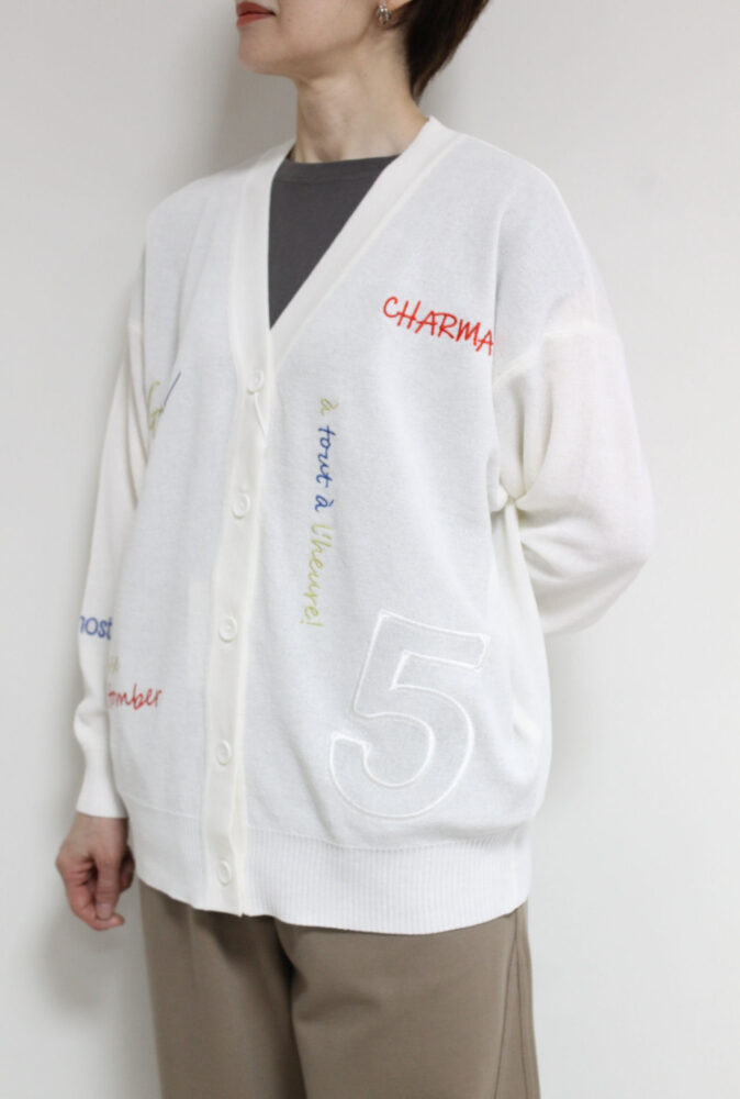 着た時に気分が上がる⤴ブランコイブリロ(blanco y brillo)メッセージ刺しゅう入りカーディガン。さらりと着れる軽い着心地。ワイドな身幅でリラックスシルエット。左下の「5」が存在感のあるアクセントになります。 詳細はブログで