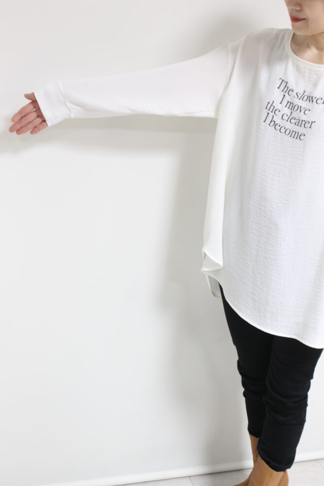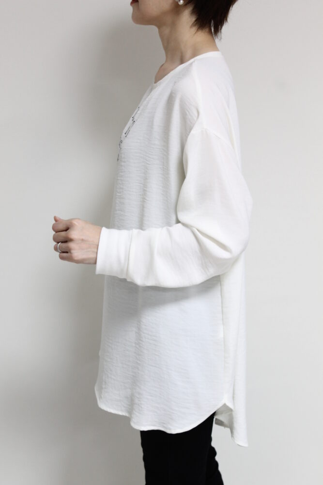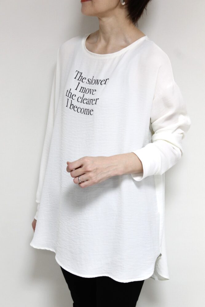 ディニテコリエ(Dignite Collier)ツイルワッシャーロゴTブラウス/オフホワイト