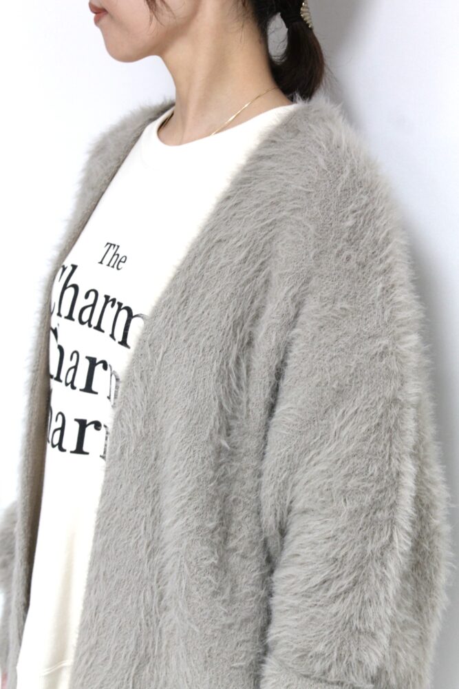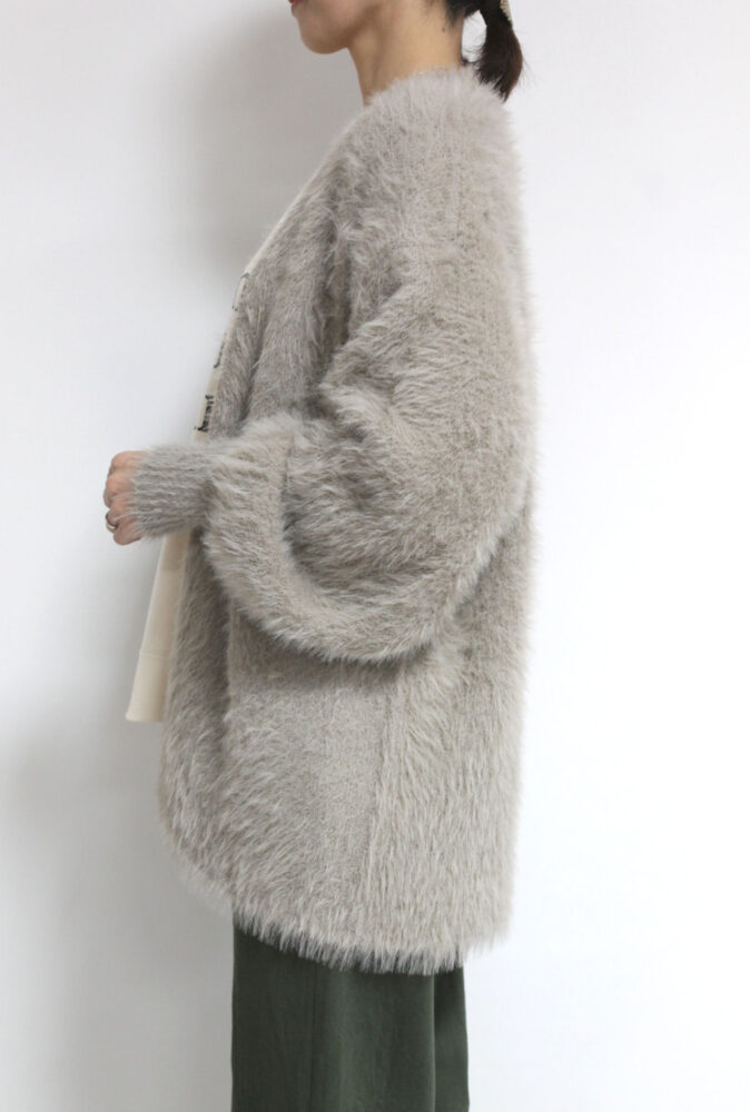 トレンドライクな着こなしが叶う毛足の長いシャギーカーディガン。ファーのようなソフトな肌触りでふんわり丸みのある女性らしいお袖が特徴です。内側が2重構造で型が崩れにくい仕様です☆