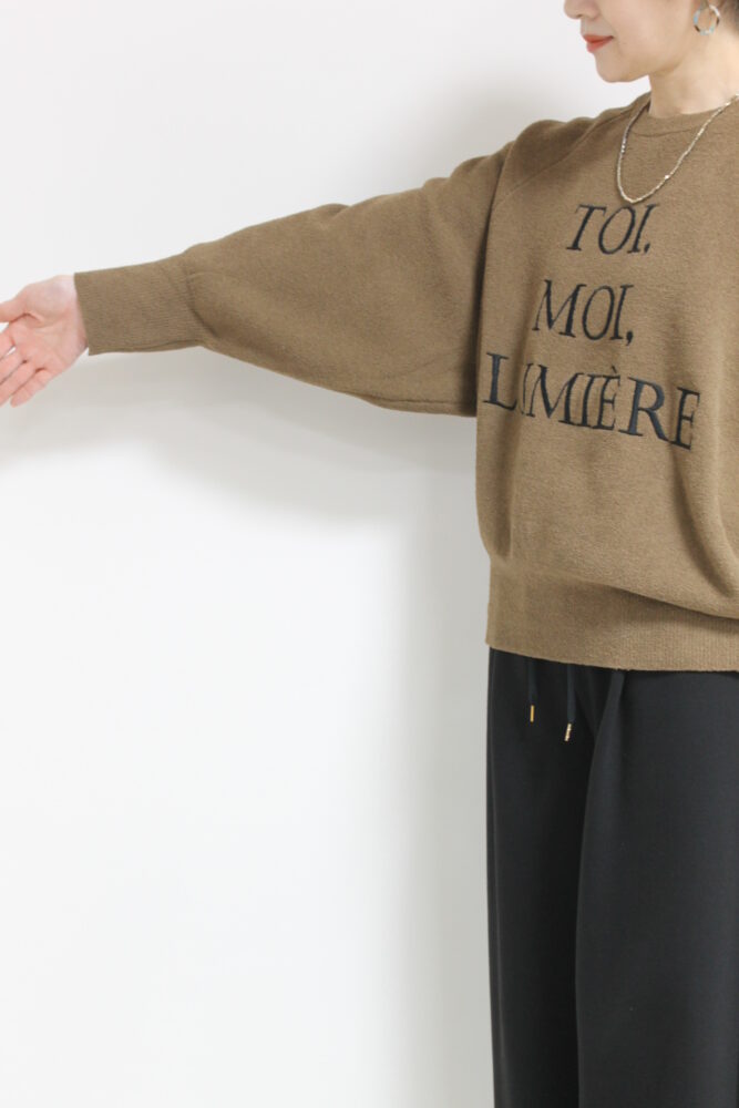 柔らかで軽い着心地のロージー(ROSIEE)モールヤーン刺繍ロゴKnit。毛玉が出来づらくてニット特有のチクチク感がありません。前身後にしっかりしたタッチのロゴ刺繍を施しました。袖付け広めのドルマンスリーブで身体のラインを拾わずきれいに着られます◎