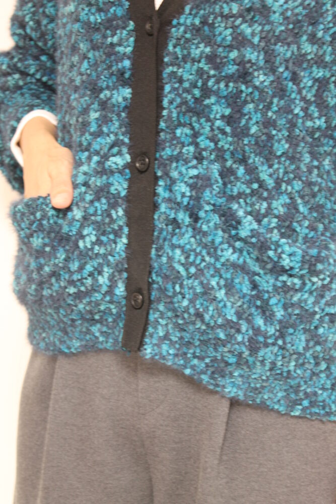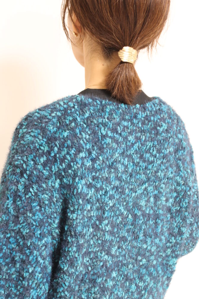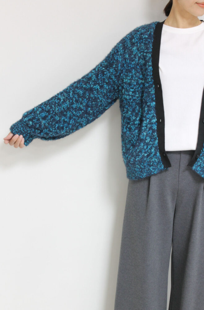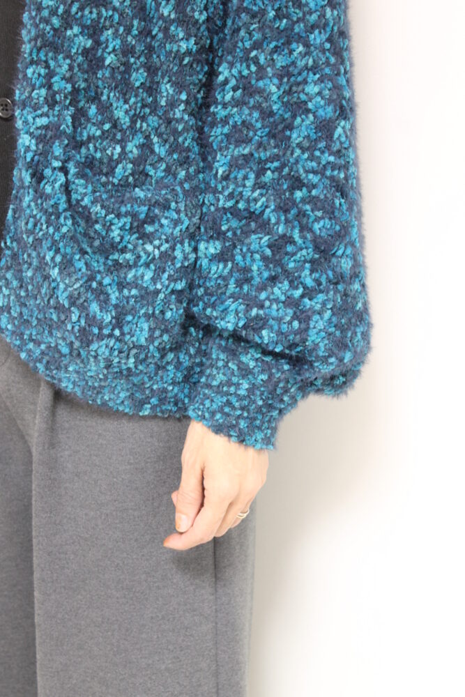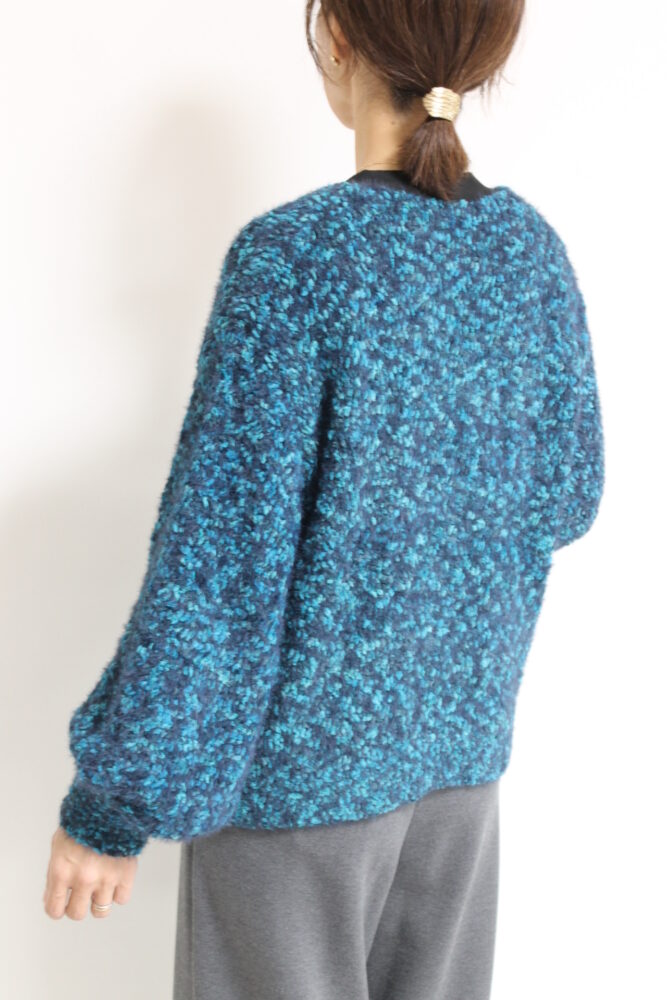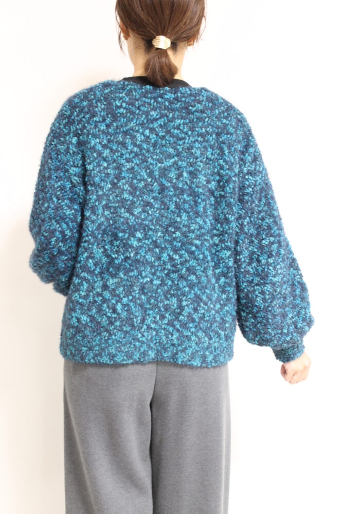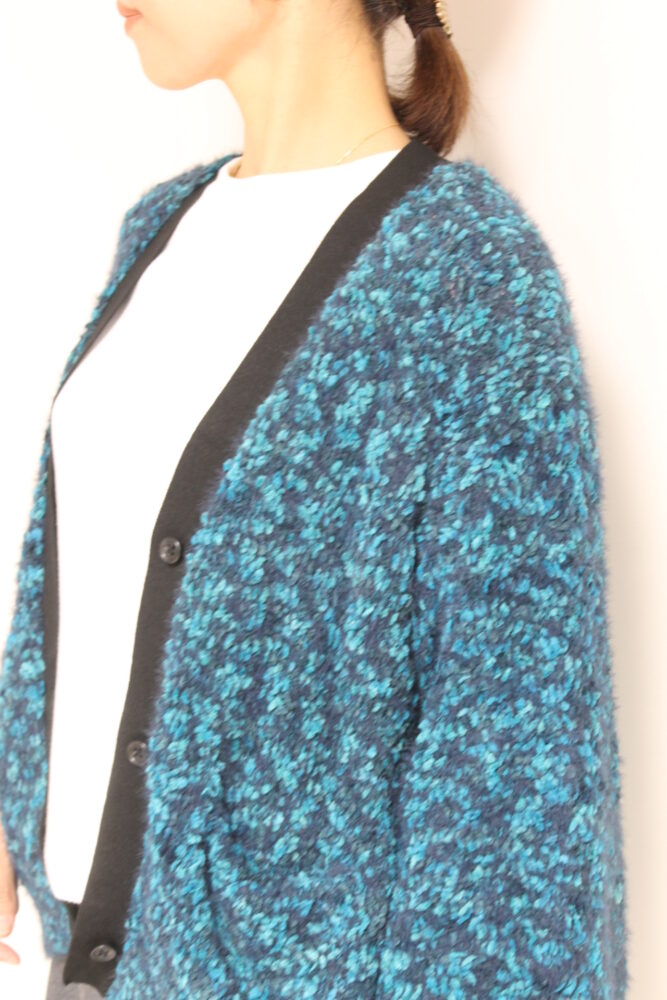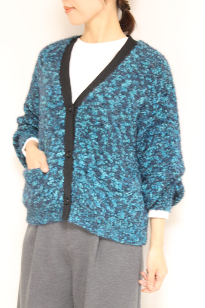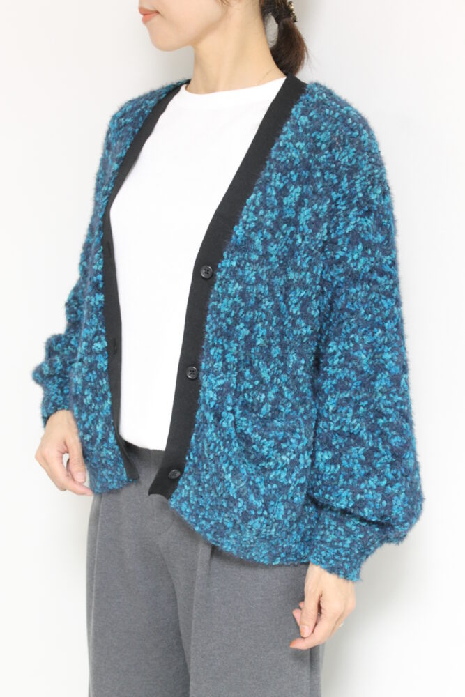 ロージー(ROSIEE)ファンシーヤーンシャギーニットカーディガン/ブルー×ブラック